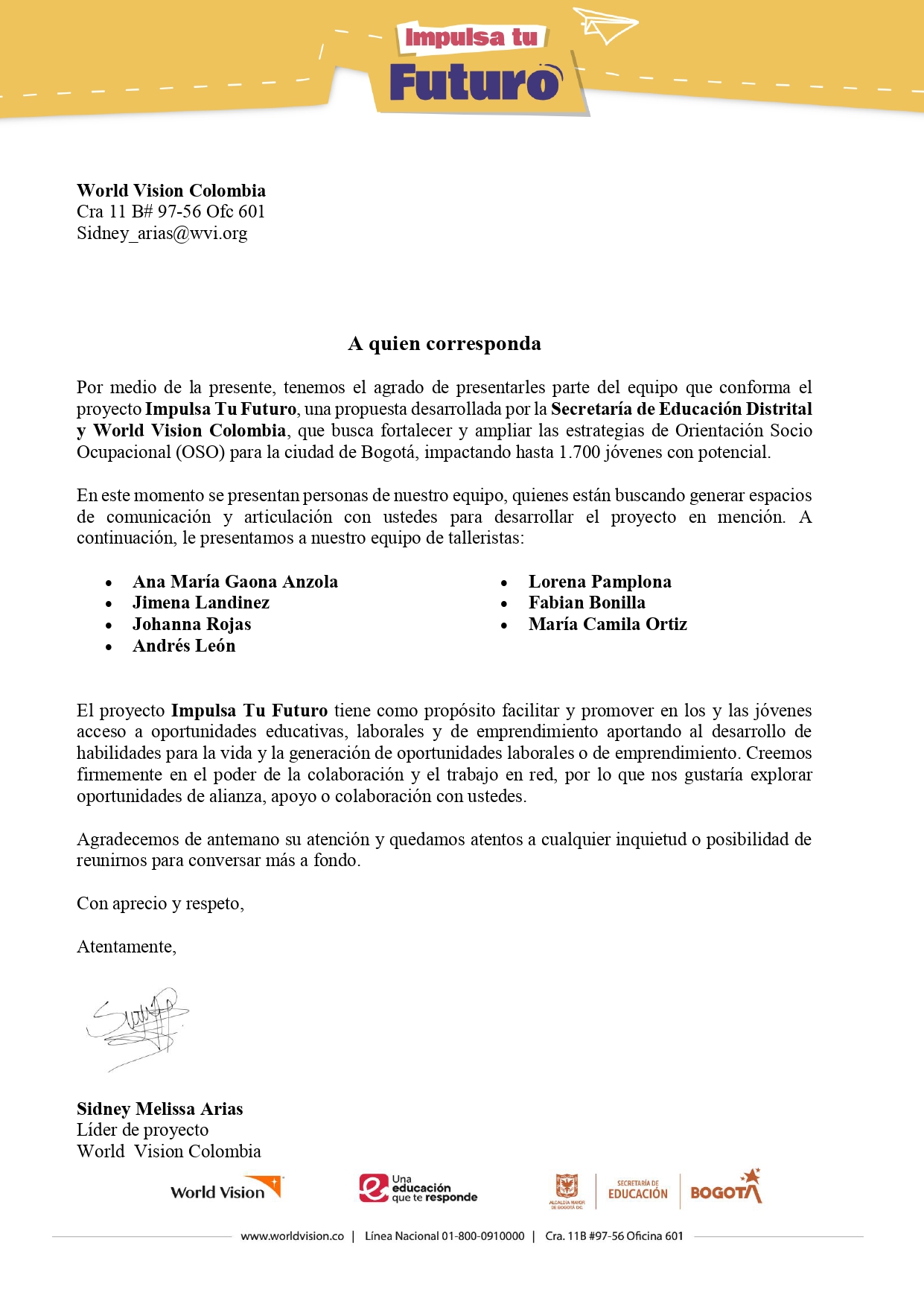 Carta de presentación del proyecto