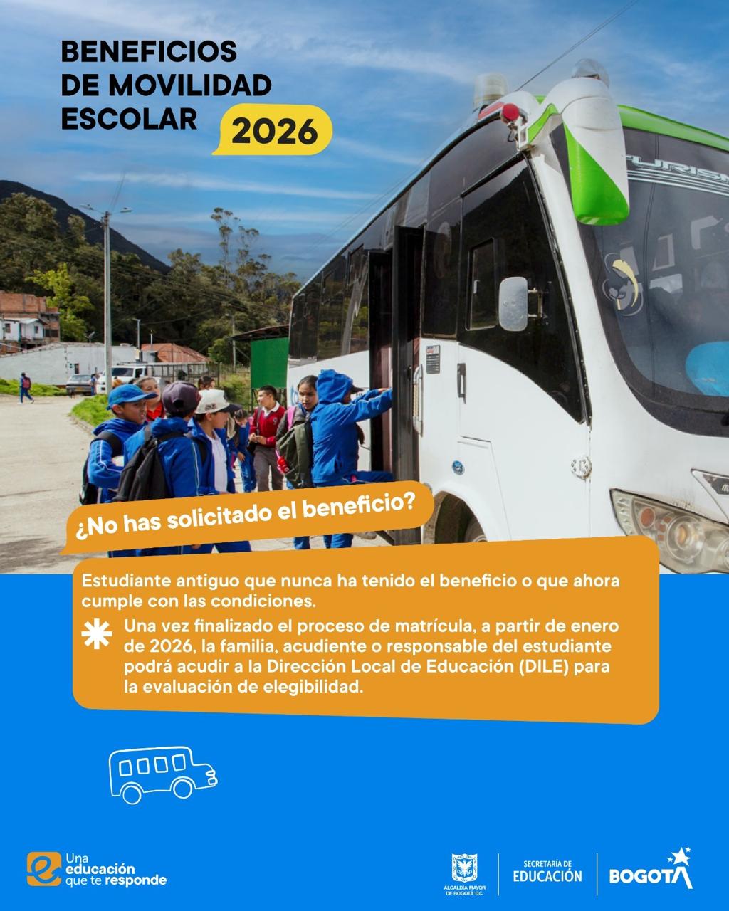 El Programa de Movilidad Escolar es fundamental para garantizar el acceso y la permanencia en el sistema educativo, facilitando el desplazamiento seguro de los estudiantes hacia y desde sus instituciones educativas. La Secretaría de Educación Distrital (SED) realizará la verificación interna de la información y asignará los beneficios con base en lo registrado en el Sistema Integrado de Matrícula (SIMAT). Esta información ya fue compartida a los correos @ institucionales de sus IED