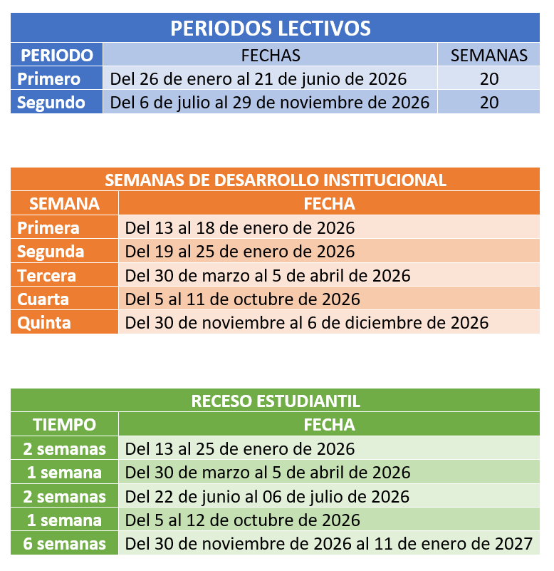 🗓️ Calendario Académico 2026: Programación y Períodos Lectivos