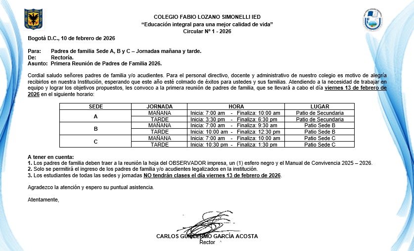 CIRCULAR NÚMERO 1 DEL 2026