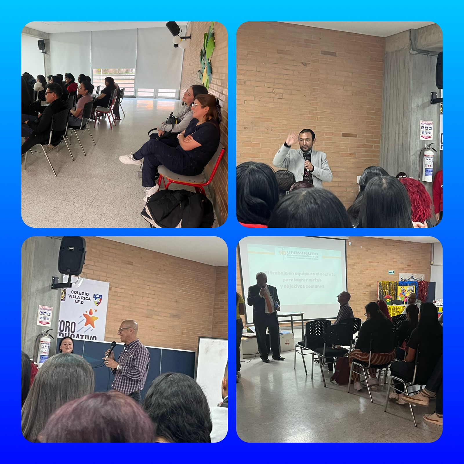 El 27 de enero de 2024, las estudiantes de tercer semestre de Pedagogía Infantil, de la Universidad Minuto de Dios compartieron con el señor Rector Luis Carlos Galeano, el coordinador Carlos Niño, la coordinadora Natalia Rosas y los docentes de la Sede B - Jornada Tarde, las estrategias didácticas elaboradas con diferentes materiales e innovación y aplicadas con los estudiantes de diferentes grados. A continuación las estrategias realizadas: