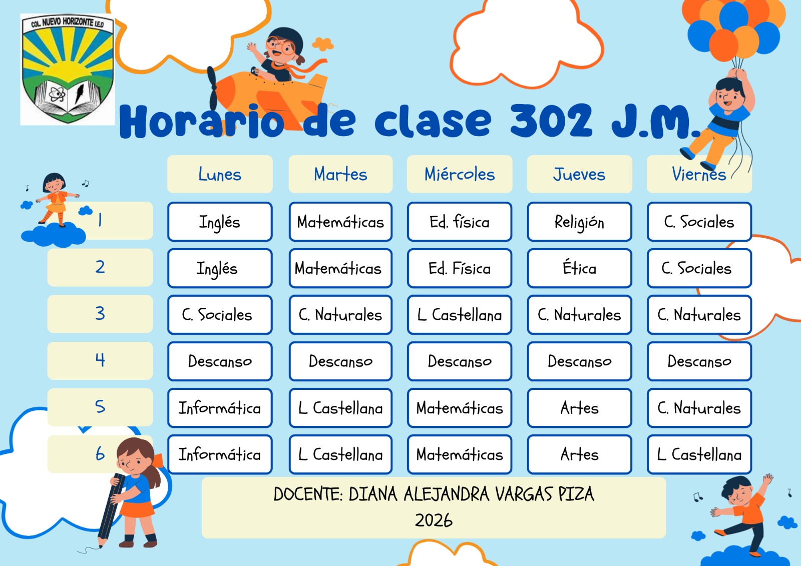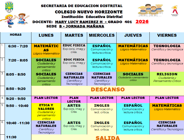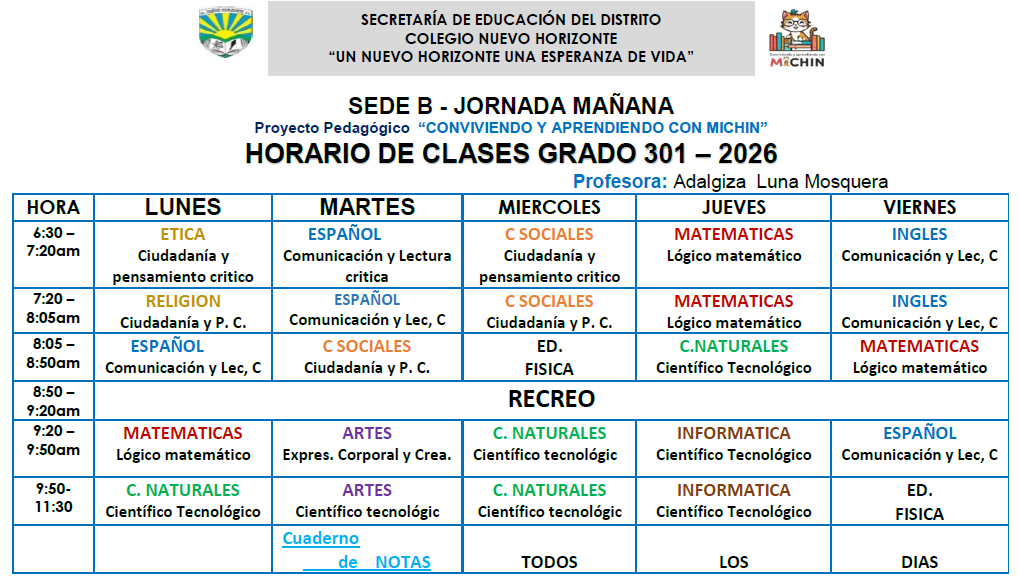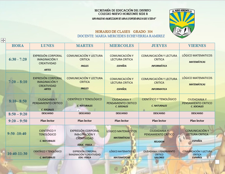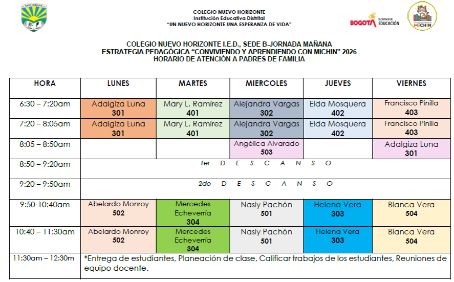 Horario de atención a padres, madres y acudientes Sede B Colegio Nuevo Horizonte (IED) Enviado por Rafael Maurici… el 05/06/2023