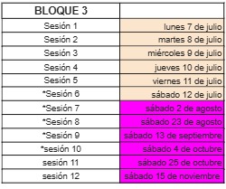 Aprovechamos para recordarles que su institución está asignada al bloque No. 3, en la jornada mañana. Los/as estudiantes serán recibidos por nuestro equipo en la plazoleta del edificio de Ciencia y Tecnología CyT a las 6:30 a. m. El proceso dará inicio el día lunes 7 de julio en las instalaciones de la Universidad Nacional de Colombia, las jornadas del bloque se desarrollarán de acuerdo con el siguiente cronograma: