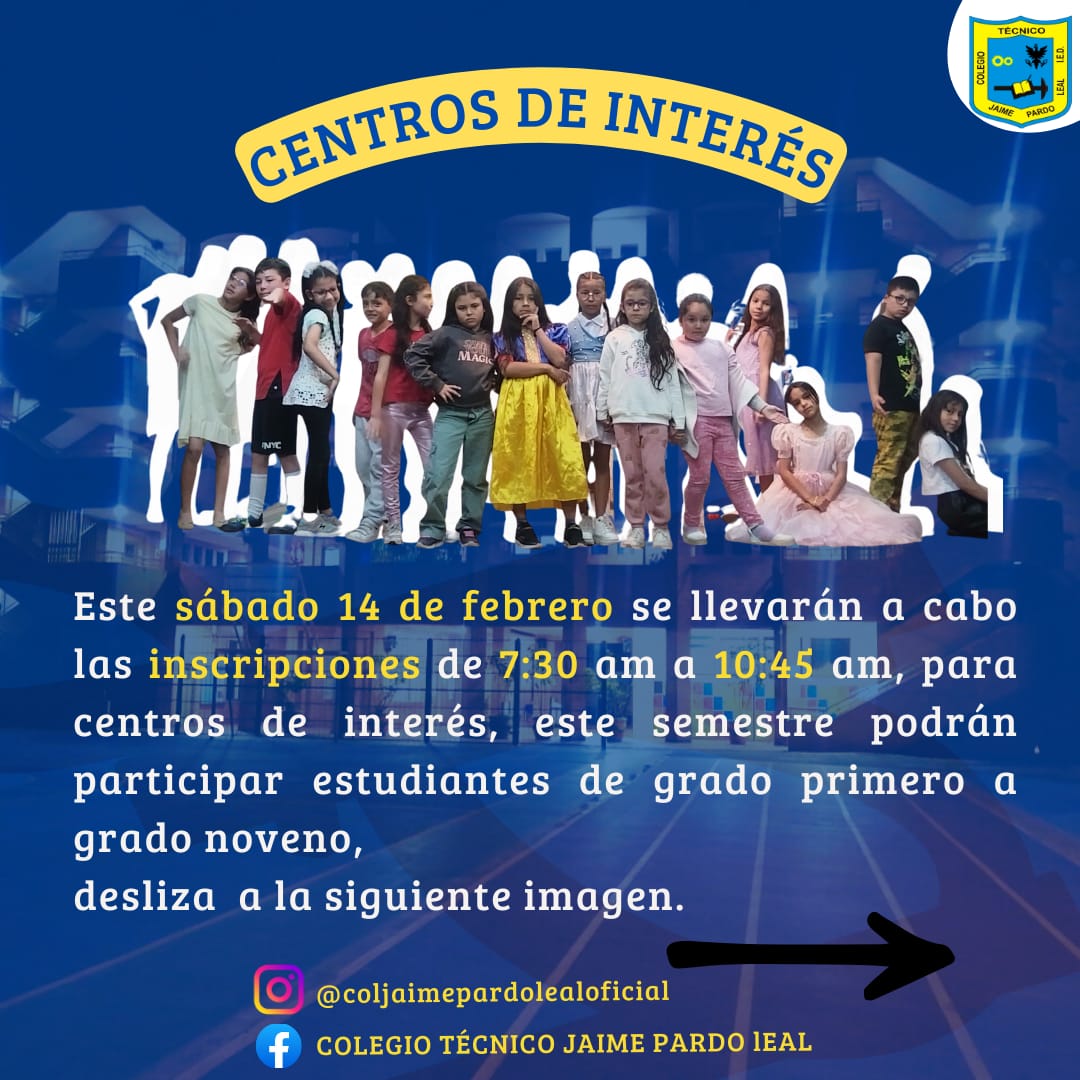 INSCRIPCIÓN CENTROS DE INTERES COLEGIO TECNICO JAIME PARDO LEAL (IED) Enviado por Karina Córdoba… el 12/02/2026