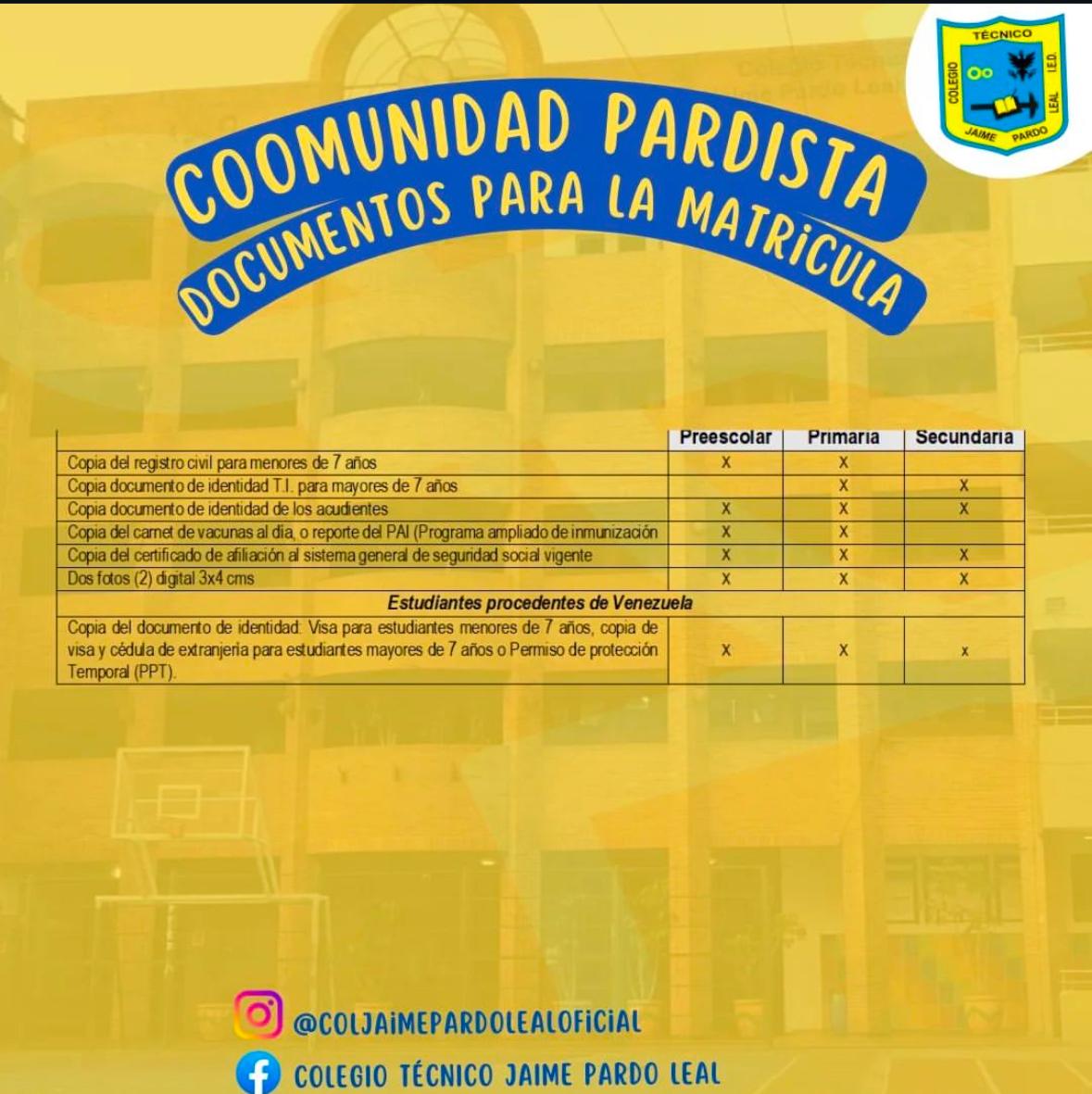 Matriculas y cronograma Finalización COLEGIO TECNICO JAIME PARDO LEAL (IED) Enviado por Ana María Galvis el 10/12/2024 Fechas importantes para tener en cuenta para la finalización del año escolar.