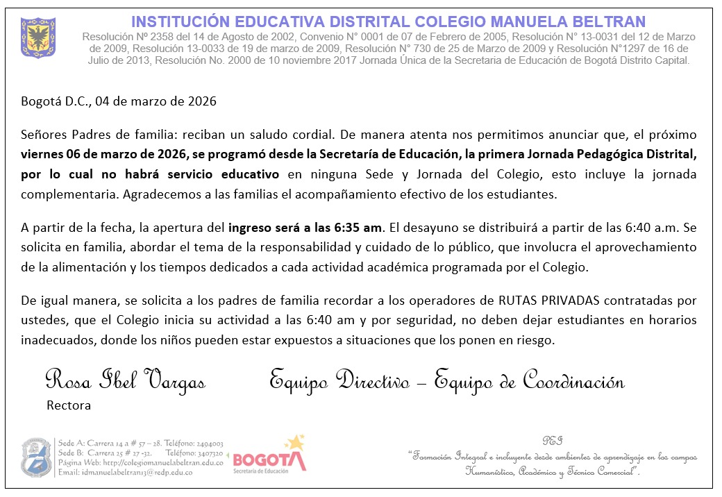 Resolución Rectoral Calendario Escolar N0. 001. Leer más...