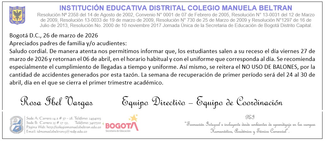 Circular 26 de mazo 2026. Receso