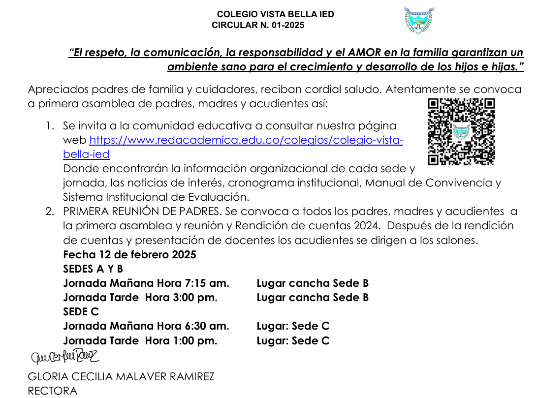 Primer Asamblea de Padres de Familia COLEGIO VISTA BELLA (IED) Enviado por Luis Ernesto P… el 05/02/2025