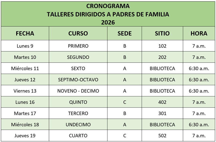 - Si tienen hijos en diferentes cursos, por favor asistan al taller que les sea más viable.