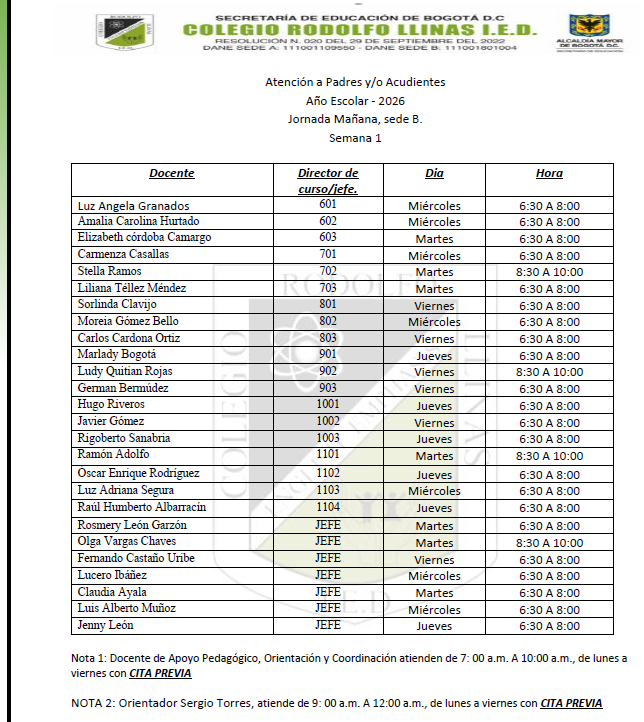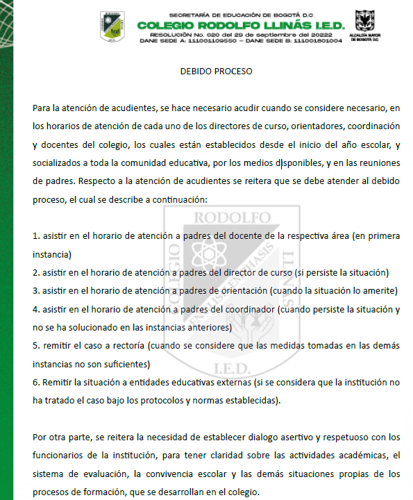 2026 - Atención a padres y debido proceso COLEGIO RODOLFO LLINÁS I.E.D. Enviado por Javier Gómez R… el 13/02/2026