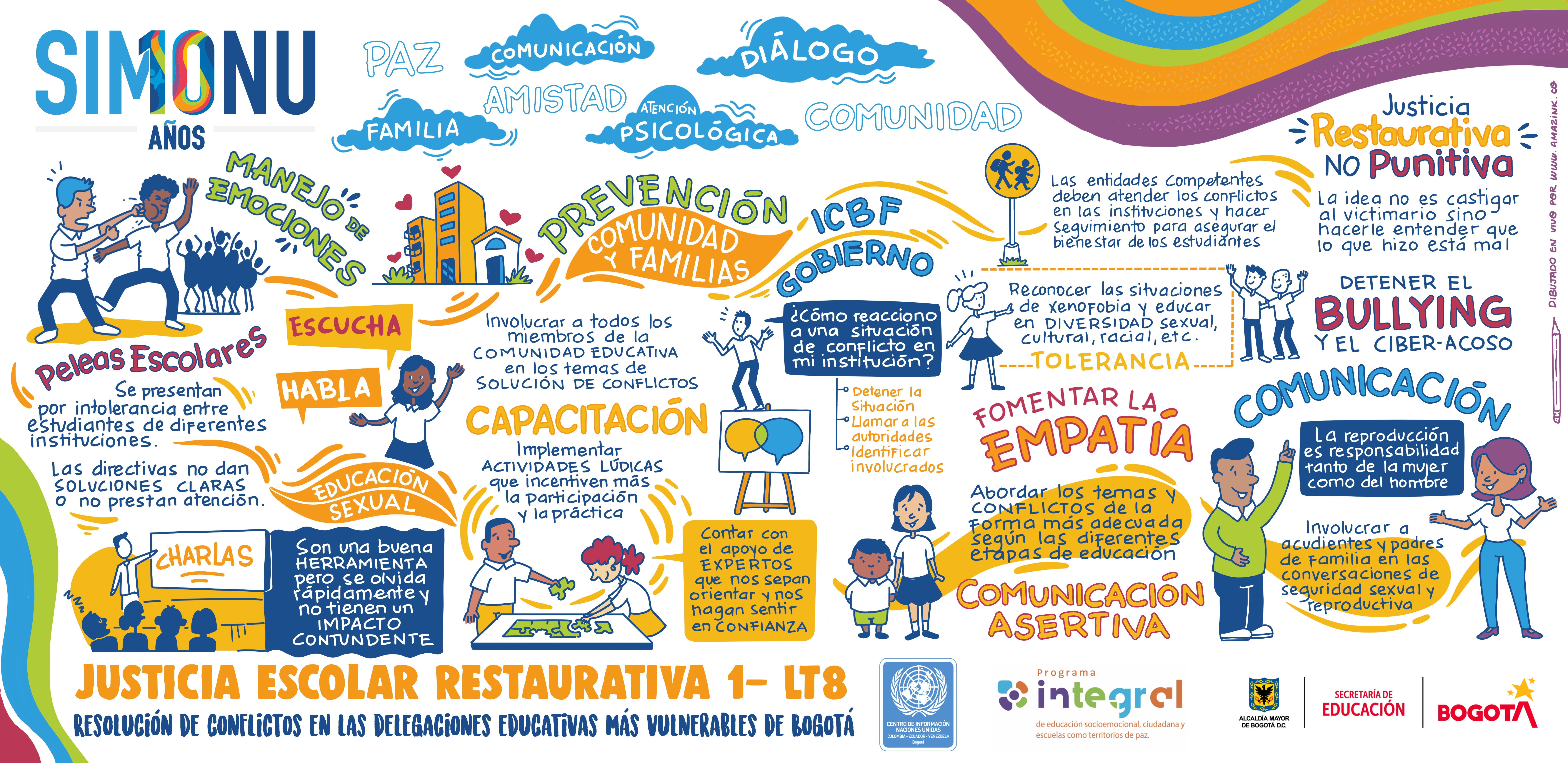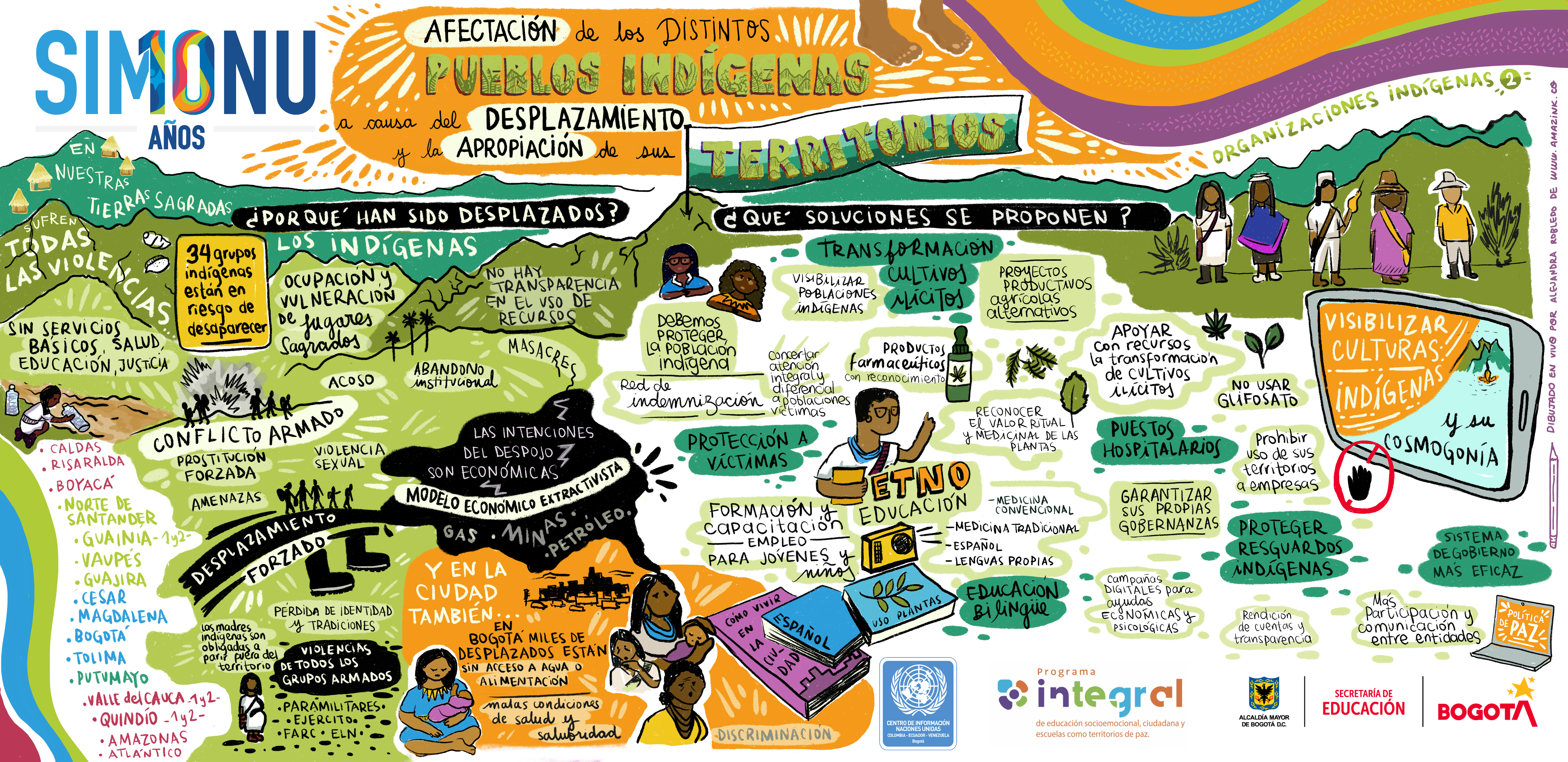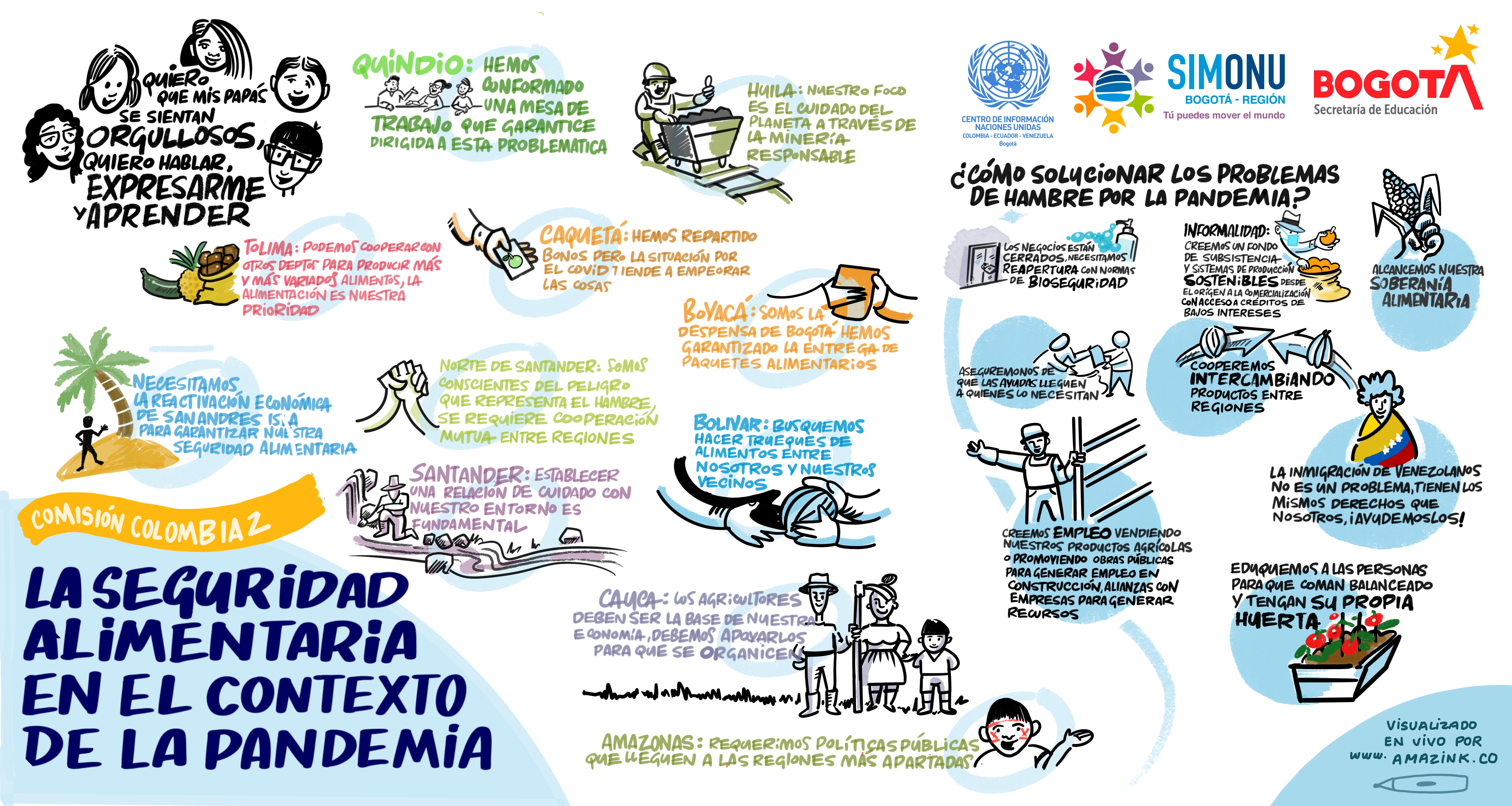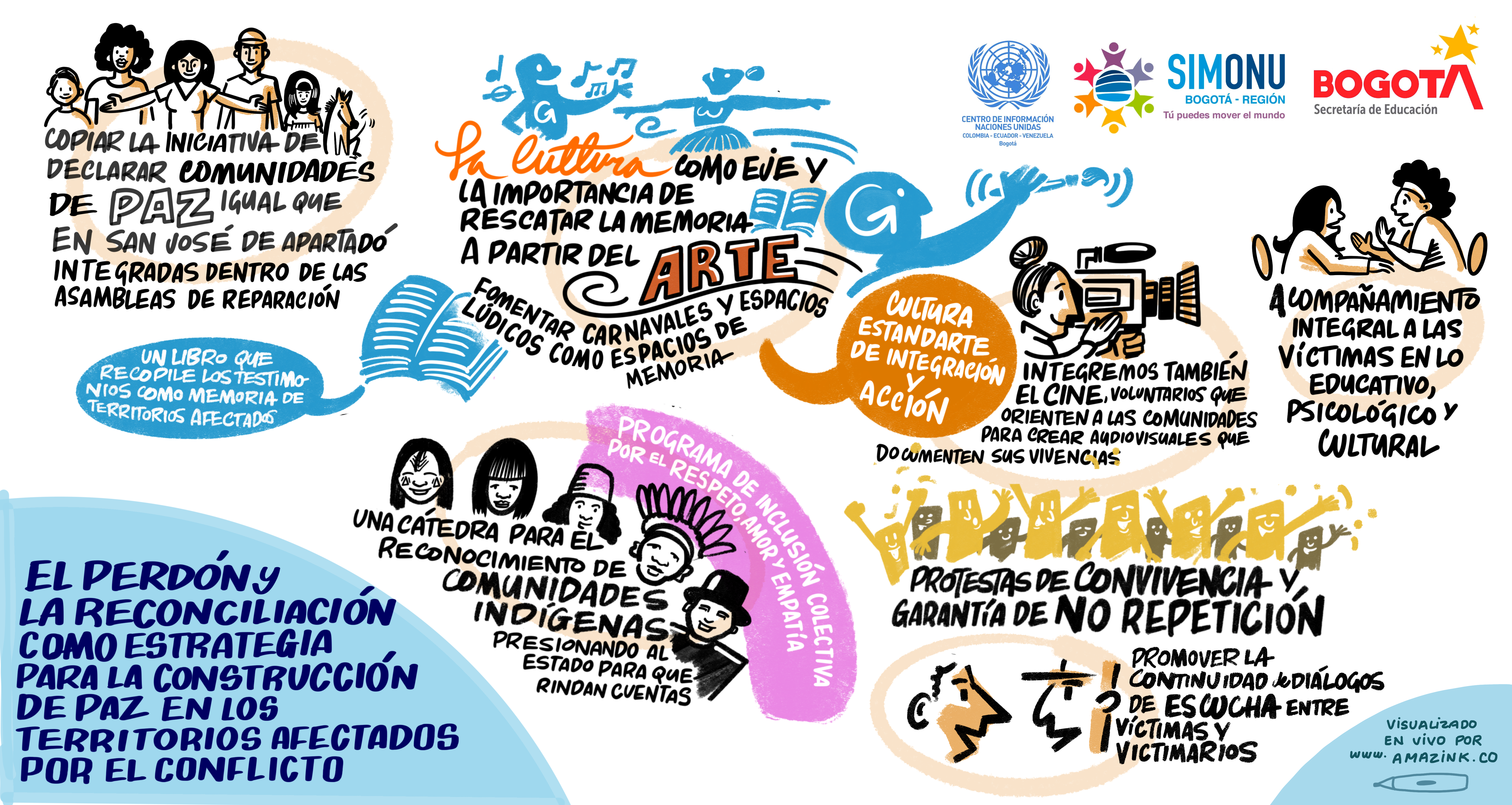 La creatividad se entrelaza con los textos e ilustraciones que hacen parte de las relatorías gráficas de algunas de las comisiones de Simonu, constituyéndose en otra forma de comunicar las ideas de transformación de las y los delegados(as).