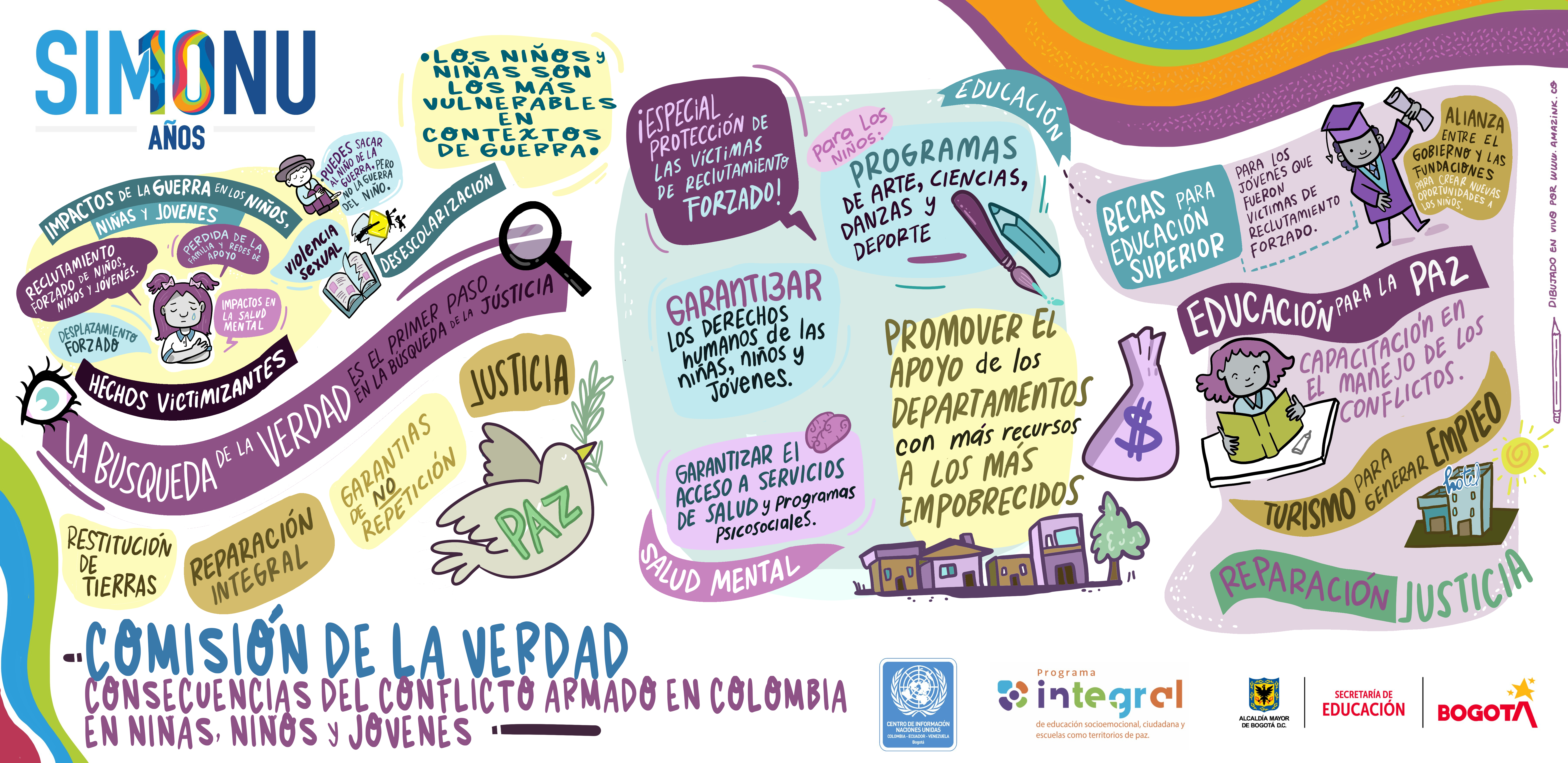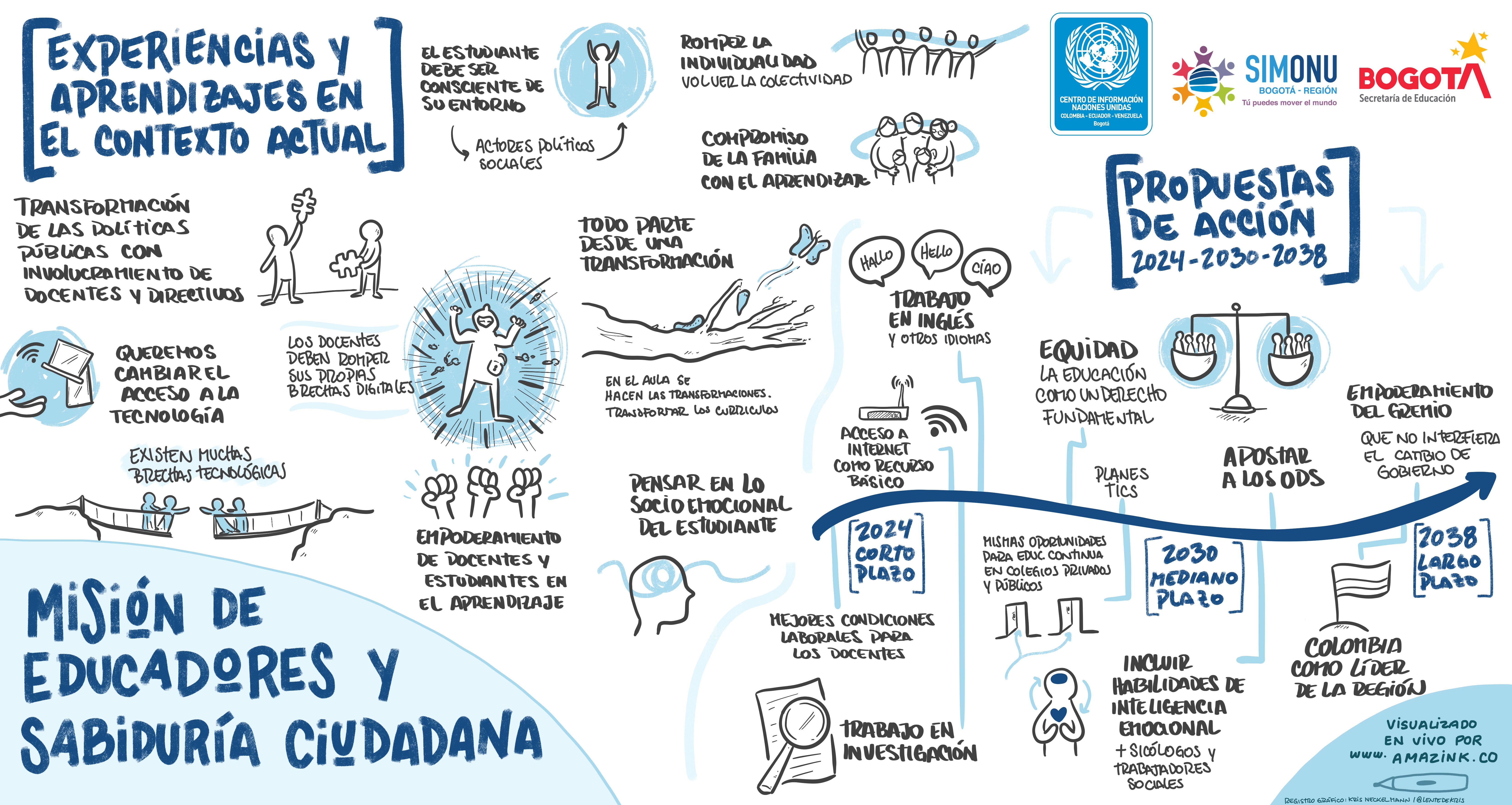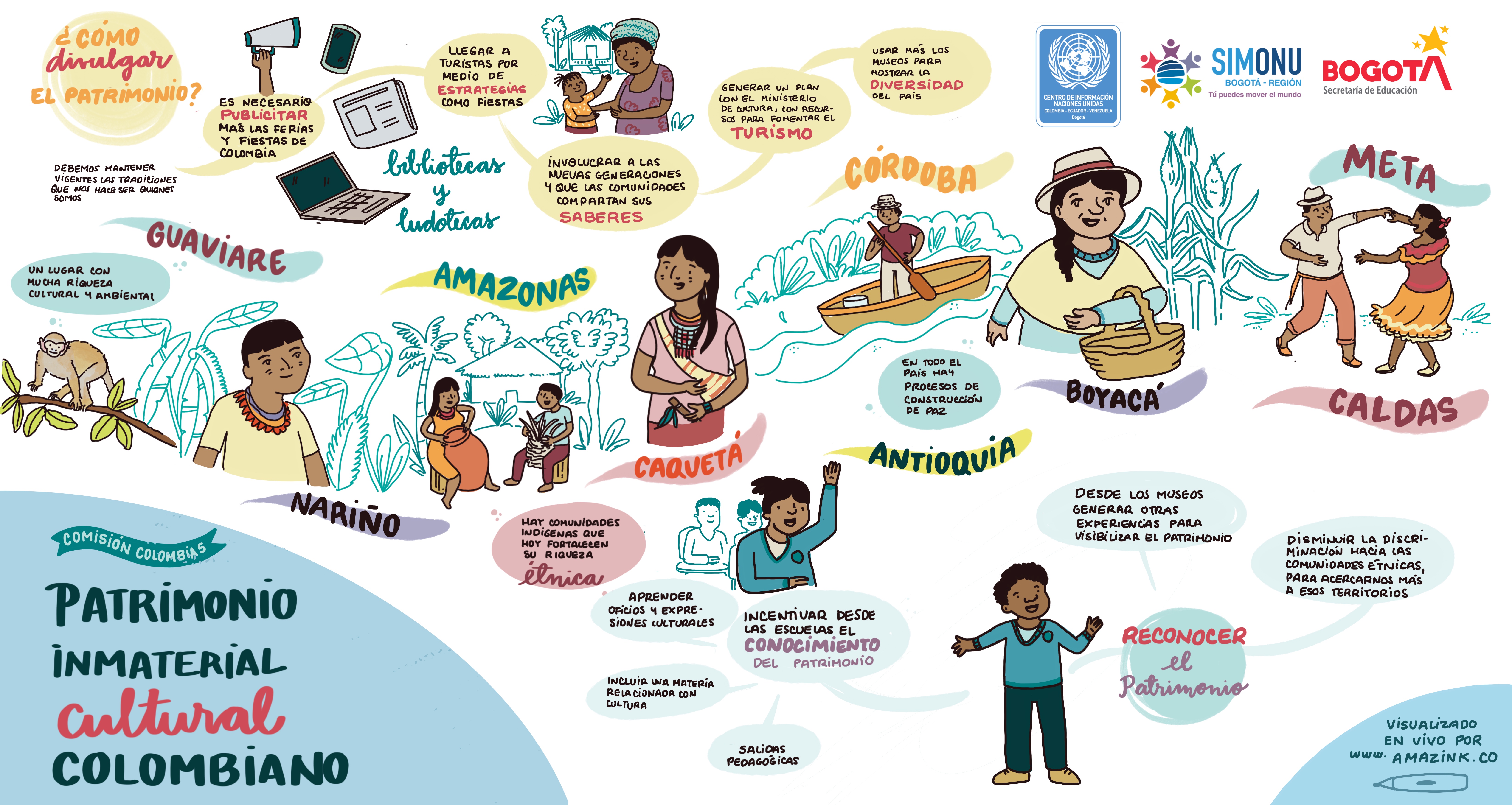 La creatividad se entrelaza con los textos e ilustraciones que hacen parte de las relatorías gráficas de algunas de las comisiones de Simonu, constituyéndose en otra forma de comunicar las ideas de transformación de las y los delegados(as).