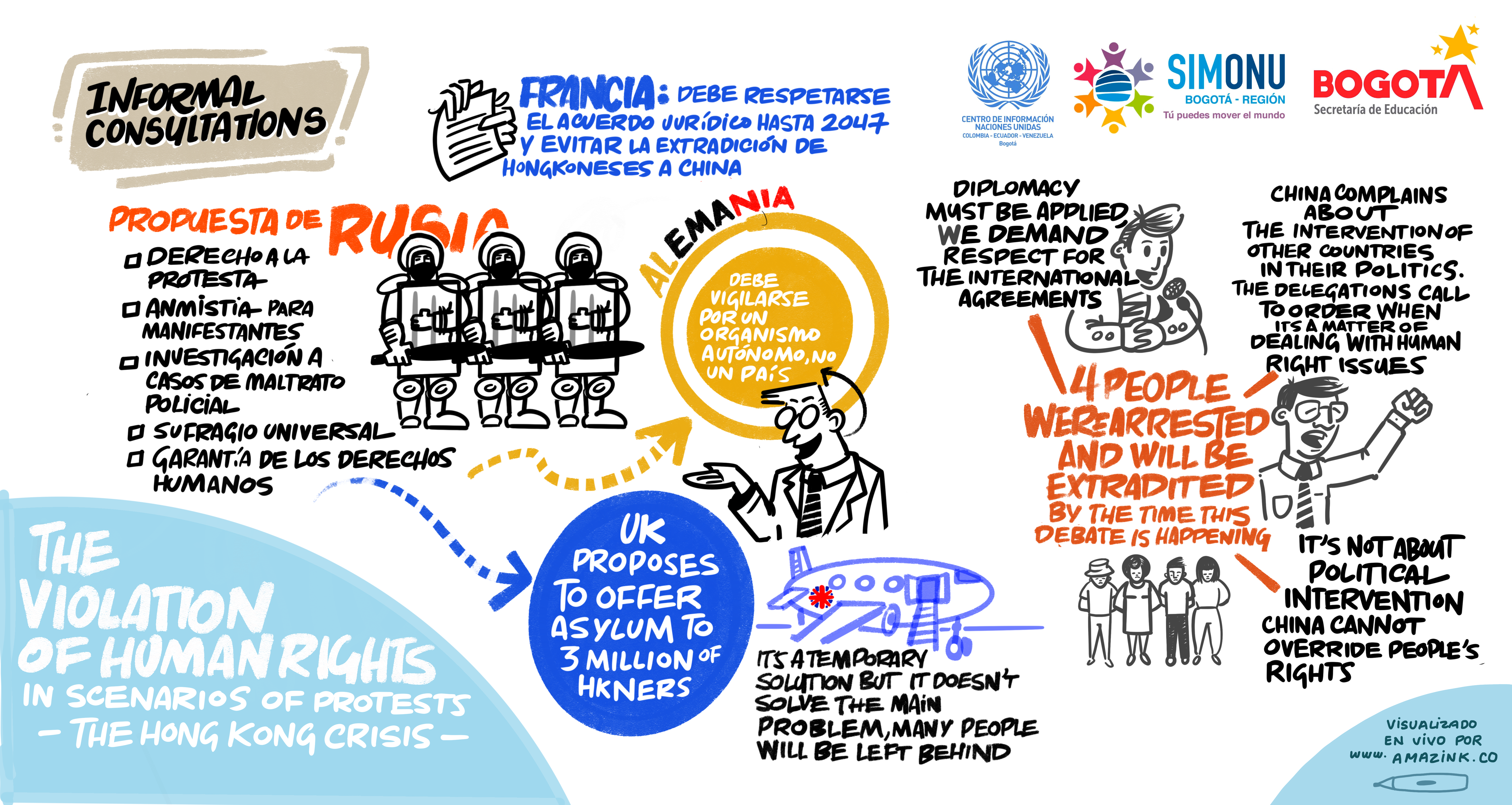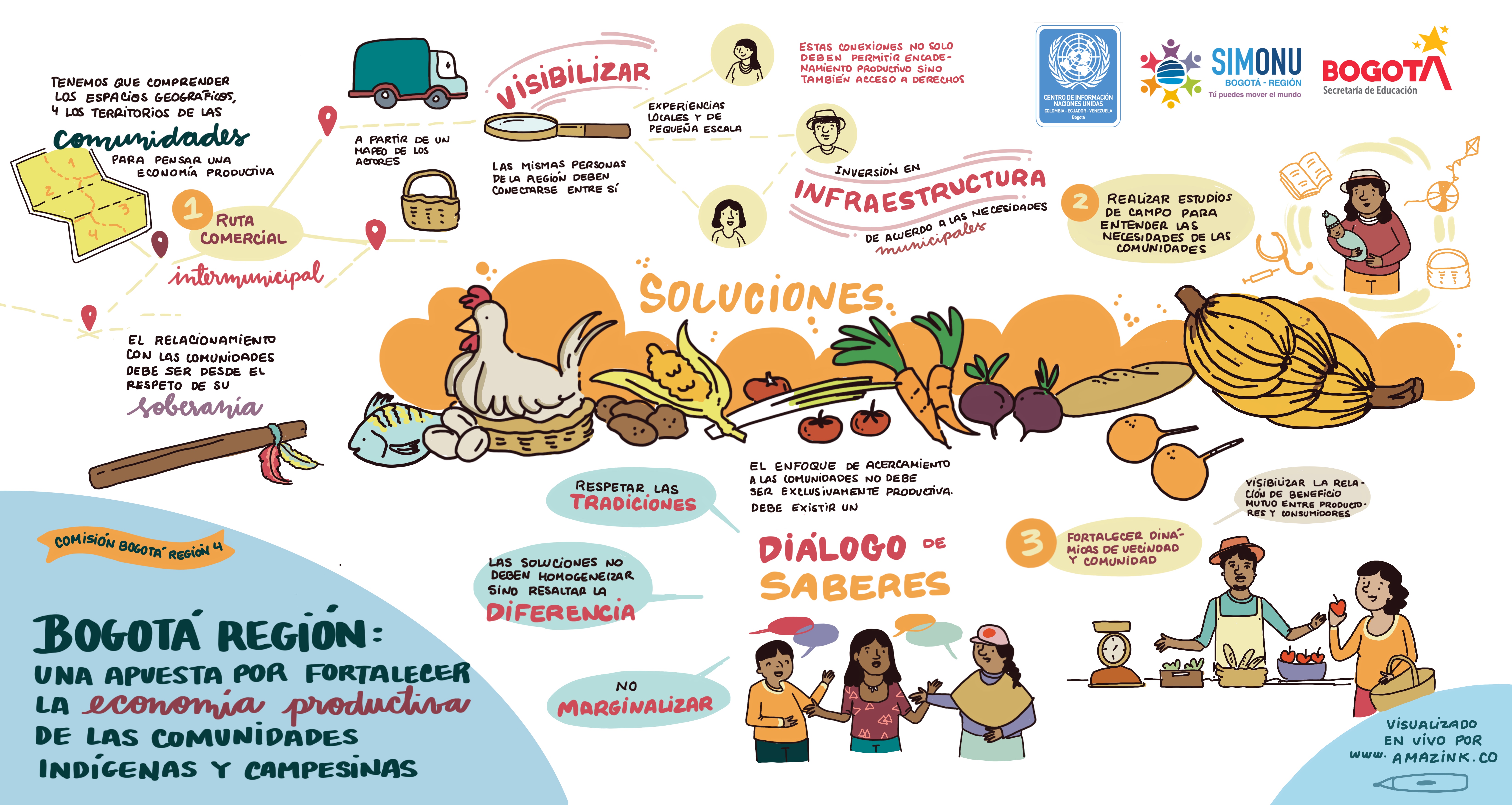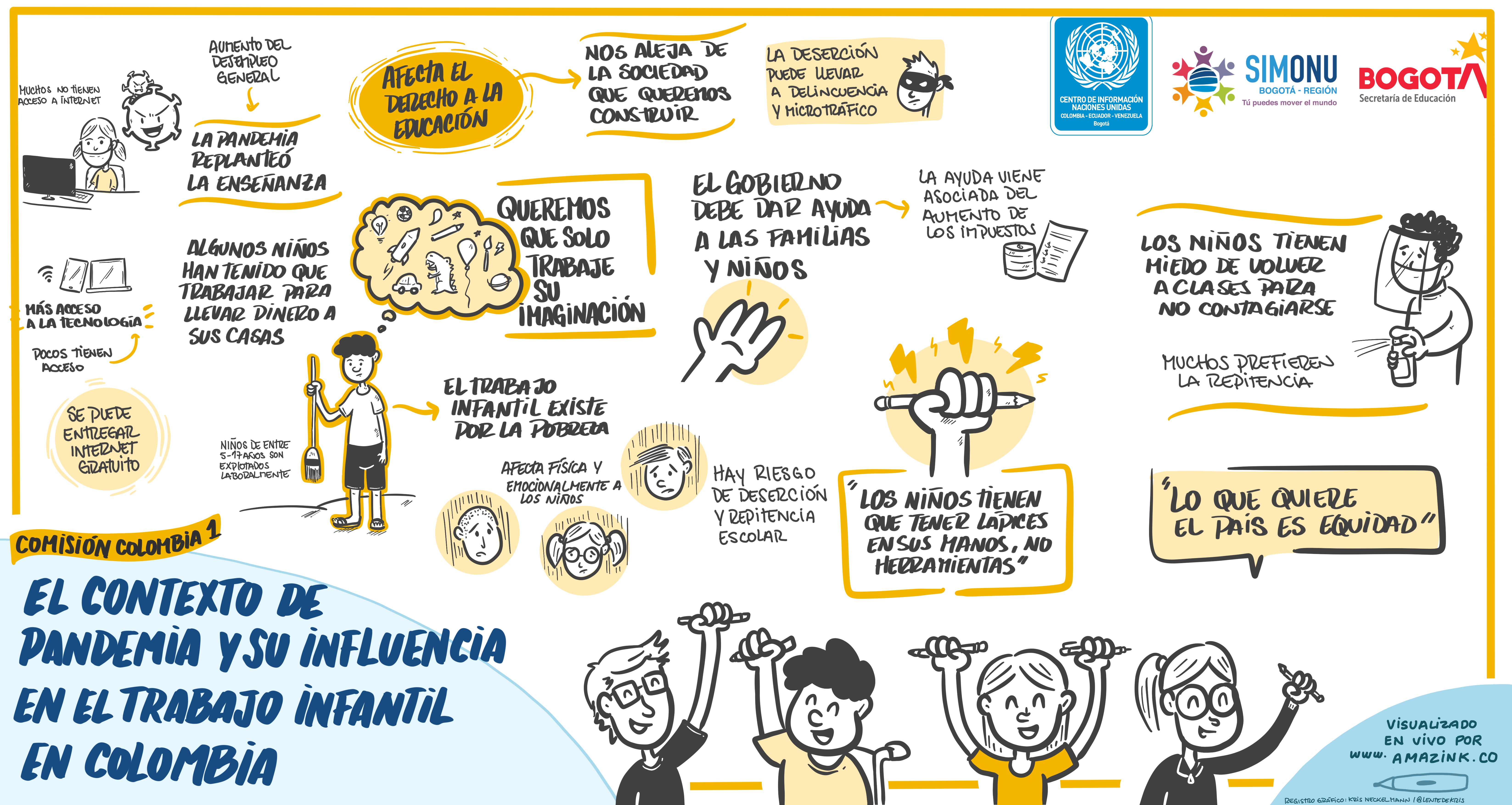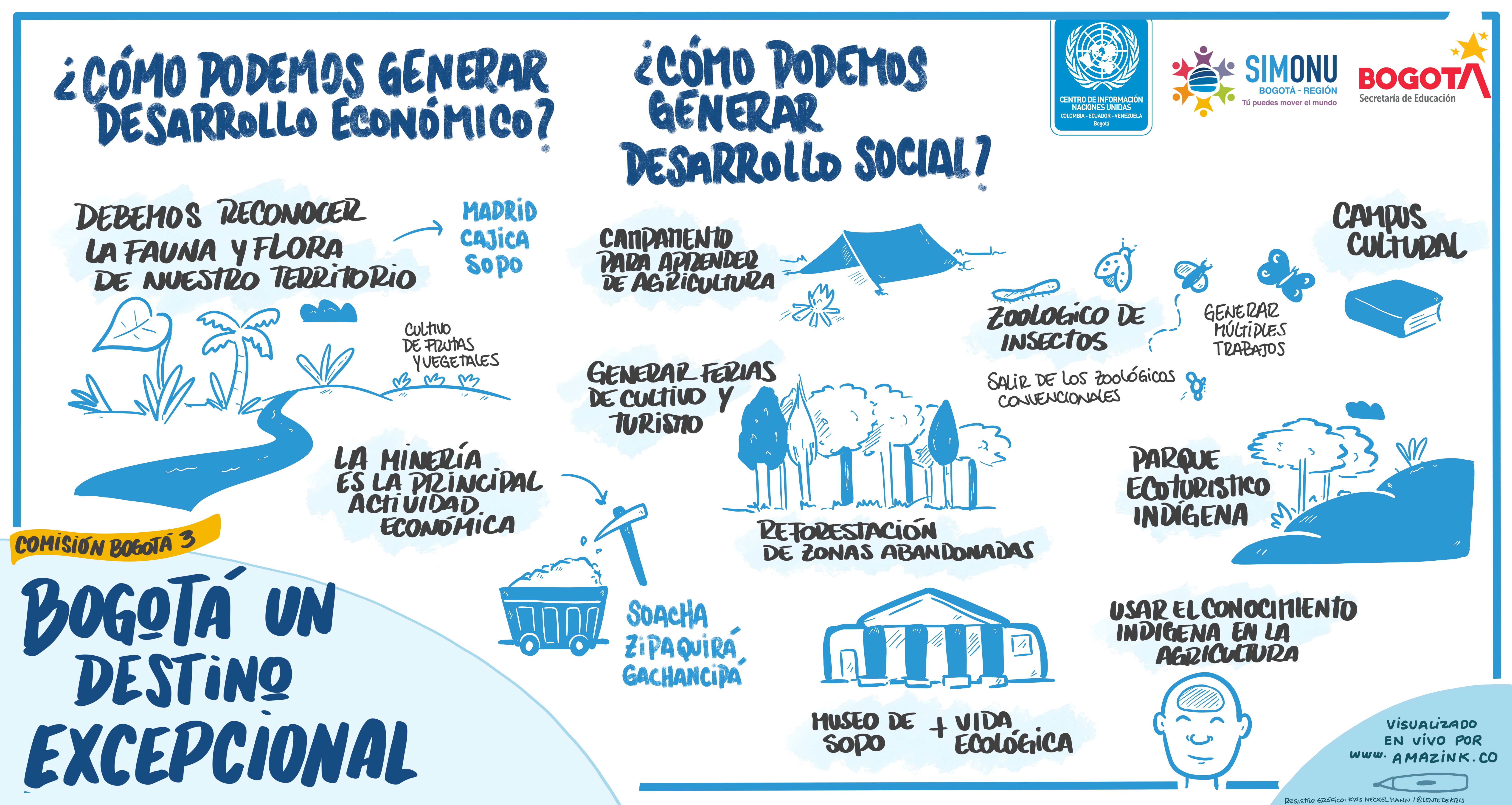 La creatividad se entrelaza con los textos e ilustraciones que hacen parte de las relatorías gráficas de algunas de las comisiones de Simonu, constituyéndose en otra forma de comunicar las ideas de transformación de las y los delegados(as).