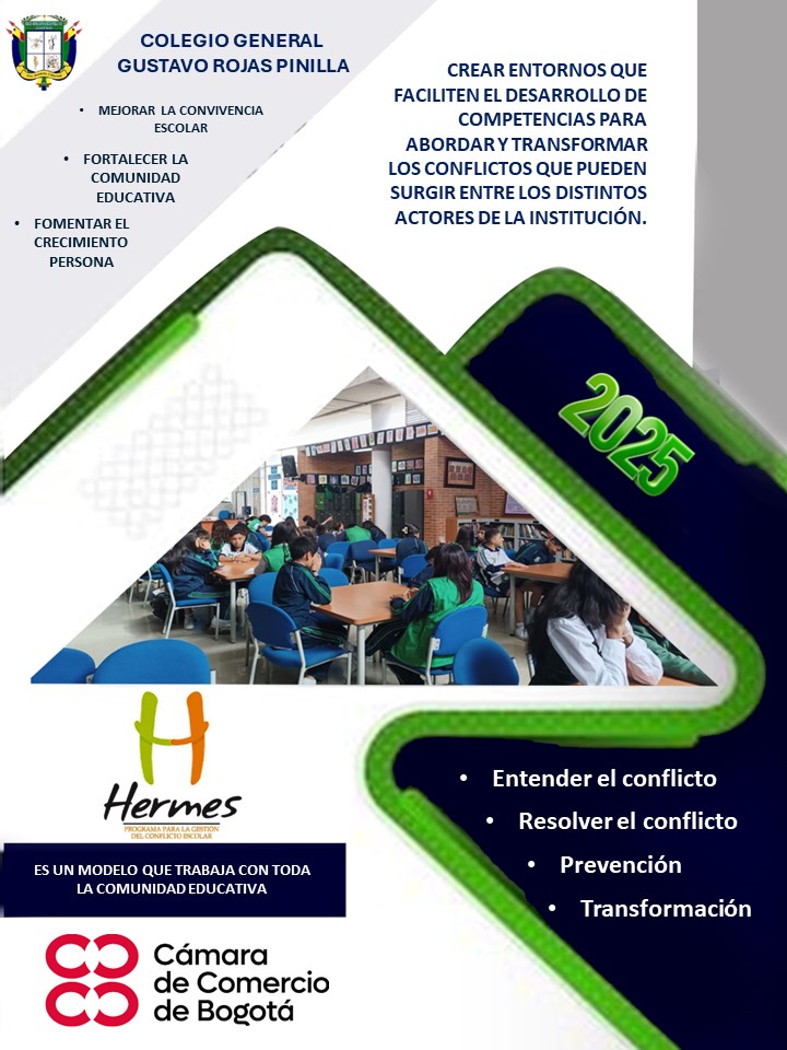 El programa Hermes surge como una propuesta pedagógica innovadora en habilidades sociales para la solución de conflictos en los jóvenes permitiendo la transformación de las relaciones de convivencia y de su entorno, a partir de los mecanismos de resolución de conflictos, estrategias de prevención del bullying y ciberbullying escolar, dirigiendo sus esfuerzos a toda la comunidad educativa (directivos, docentes, estudiantes padres y madres de familia). Fortaleciendo los vínculos familiares en convivencia, como fuente de productividad y desarrollo de ideación de negocio.