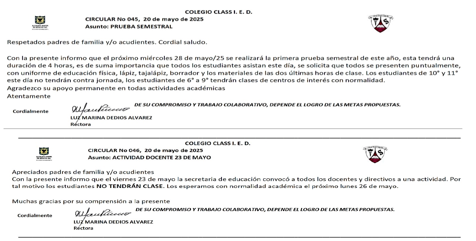 CIRCULAR 45 Y 46