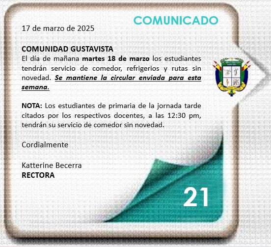 COMUNICADO 17 DE MARZO DE 2025 Colegio General Gustavo Rojas Pinilla (IED) Enviado por Carlos Mario C… el 17/03/2025