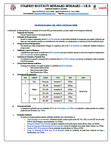 CRONOGRAMA FIN AÑO ESCOLAR 2025 Enviado por Alexandra Rodriguez el 19/11/2025 Cronograma fin de año 2025