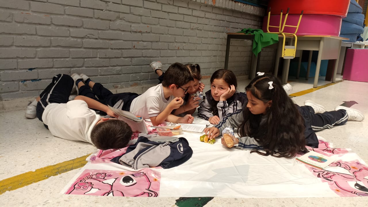 Para destacara la importancia de la lectura, realizamos un PICNIC LITEARIO; en el que cada estudiante trajo su libro y fruta favorita y durante una hora por cursos acompañados de los maestros, leyeron libremente y compartieron libros de aventura, terror, fantasía, entre otros; dando rienda suelta a su imaginación y haciendo gala de nuestra consigna "LEER TE DA ALAS".
