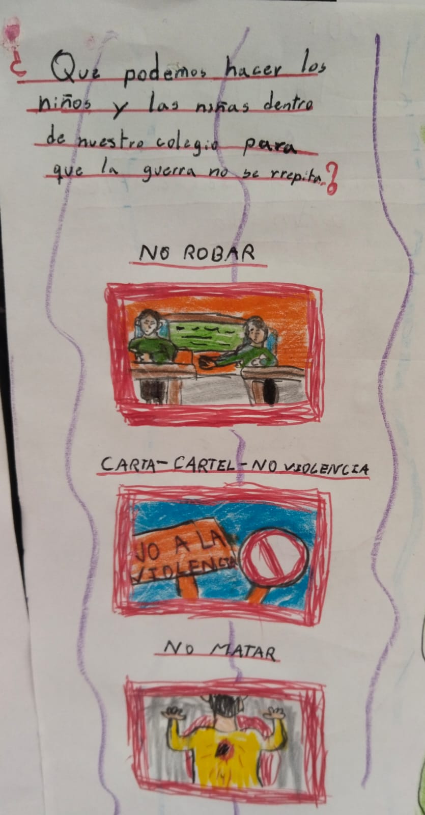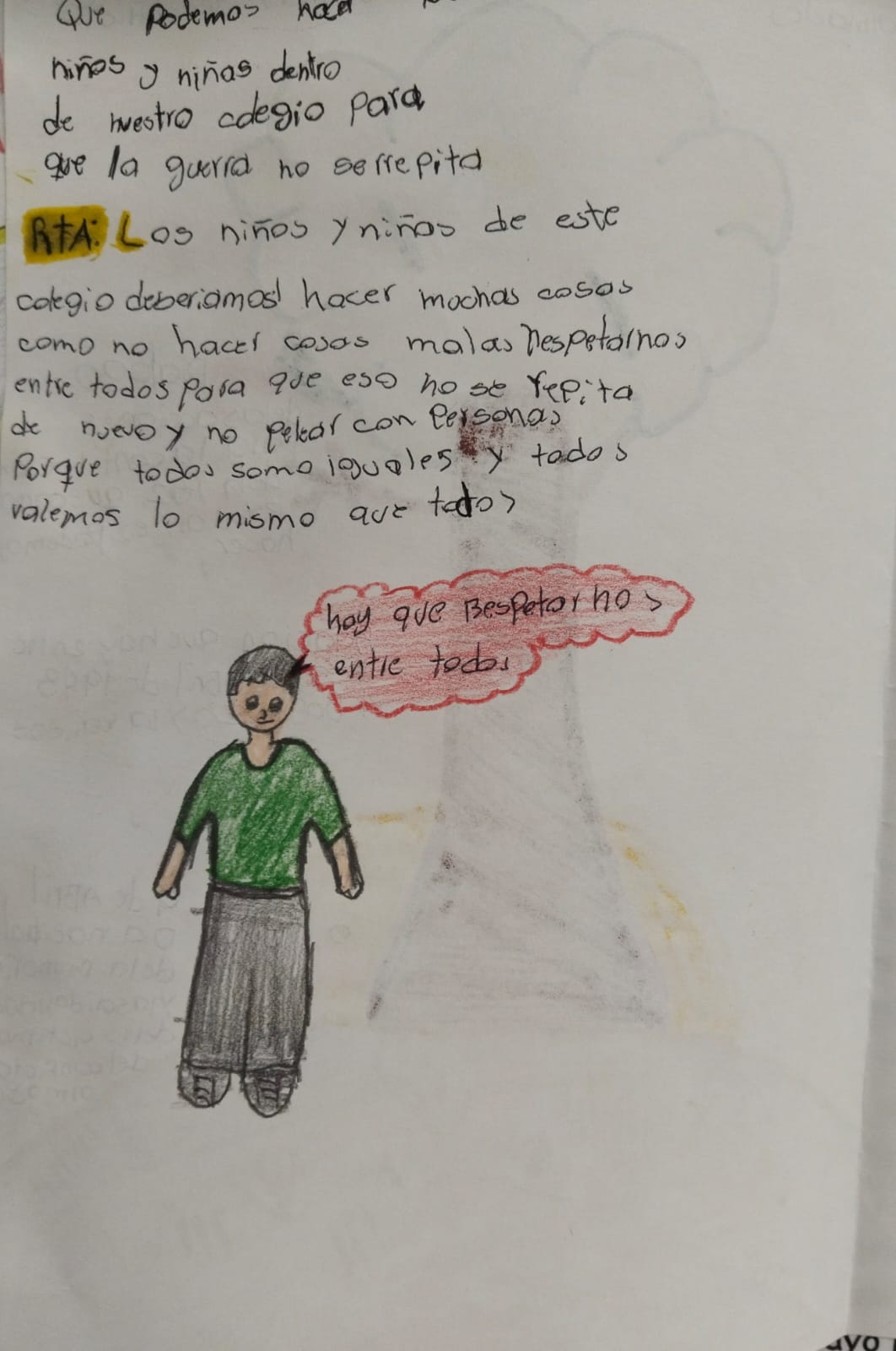 A través de diversas actividades, fortalecieron su pensamiento crítico y expresaron sus ideas construyendo sus propios relatos de paz, reconociendo la importancia de promover el respeto, la empatía y la convivencia en su vida cotidiana.