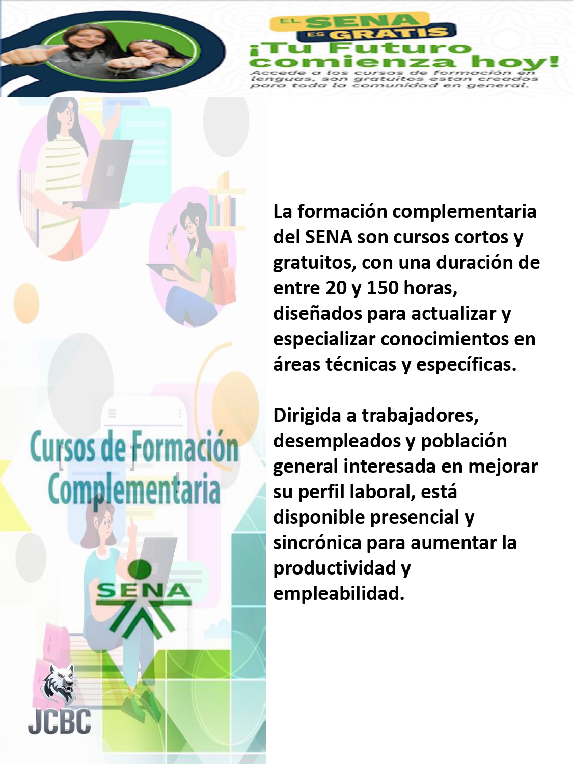 La formación complementaria del SENA se caracteriza por ser de corta duración y enfocada en el desarrollo de habilidades específicas que fortalecen la empleabilidad, productividad y apropiación tecnológica de los participantes .