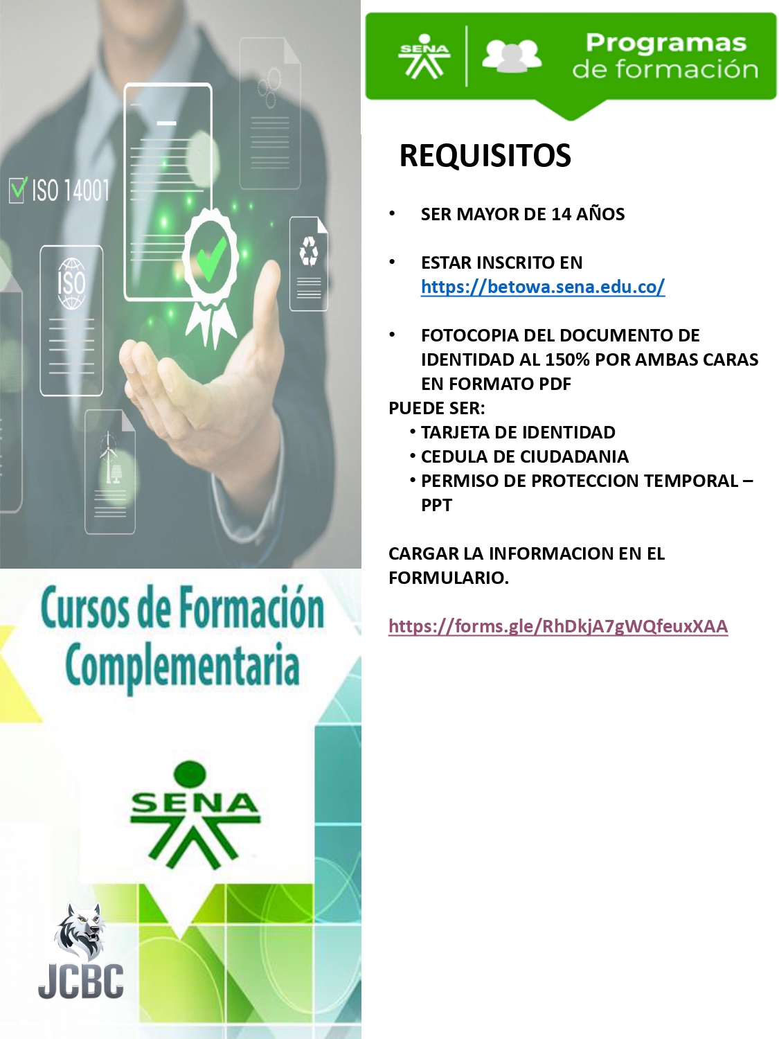 - Estar registrado en plataforma SENA.