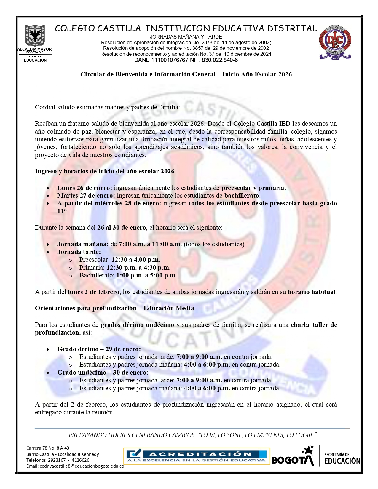Estimados Padres y madres de familia, compartimos información relevante para la próxima semana: horarios de ingreso y salida. Días de inicio de clases para ambas jornadas: