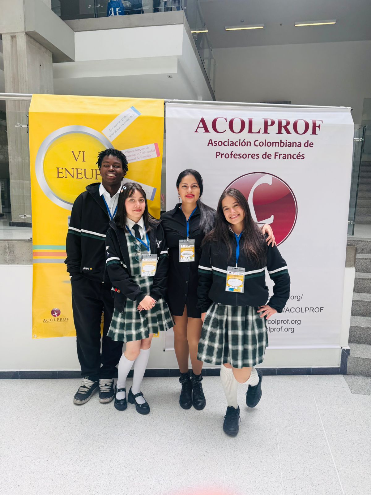 La Asociación Colombiana de Profesores de Francés (ACOLPROF) certificó la participación de la docente Andrea Ximena Calderón Martínez y tres estudiantes en el VIII ENEUF y el XVIII Coloquio de experiencias de investigación y práctica pedagógica, realizados en la Universidad de La Salle los días 6 y 7 de noviembre de 2025.
