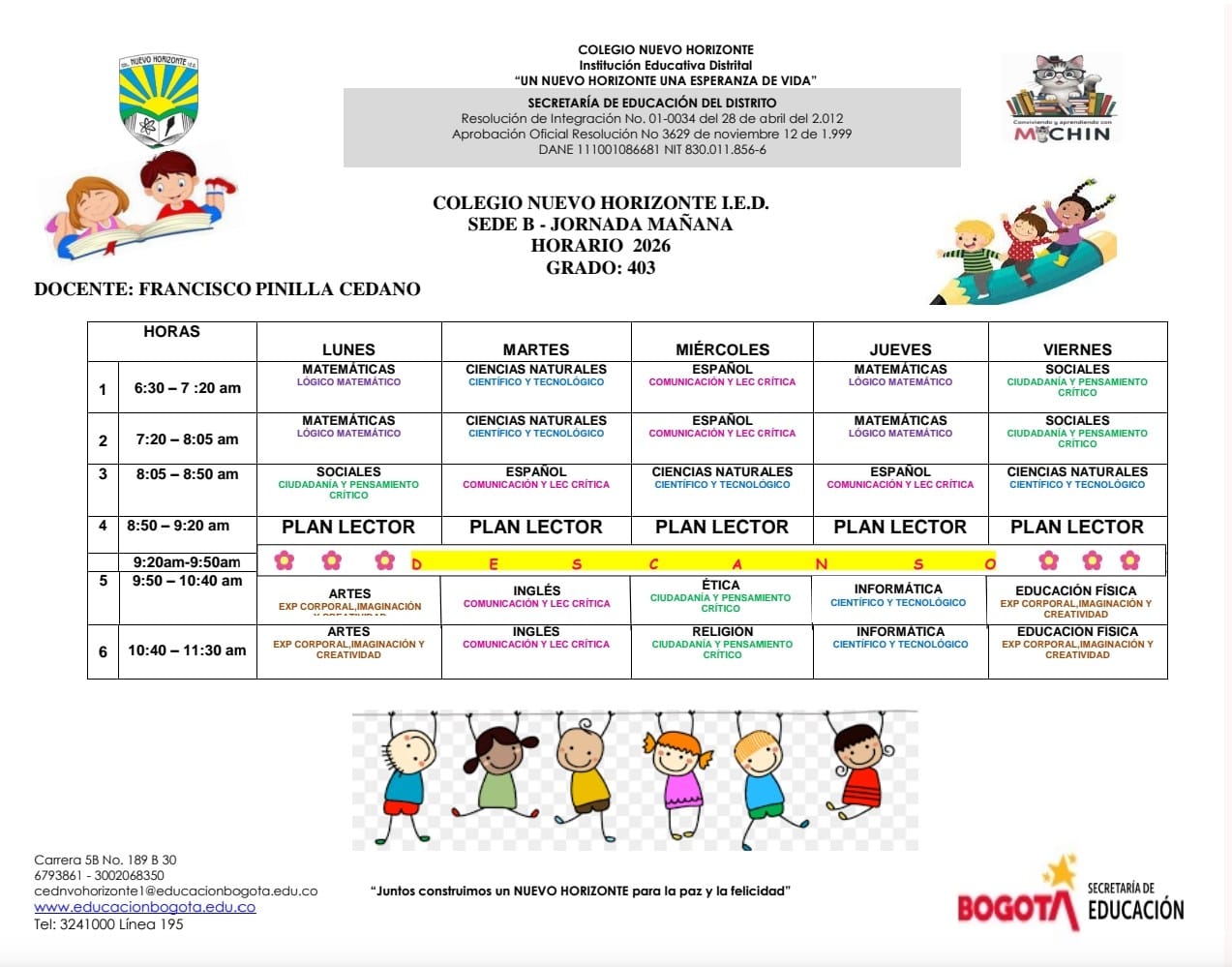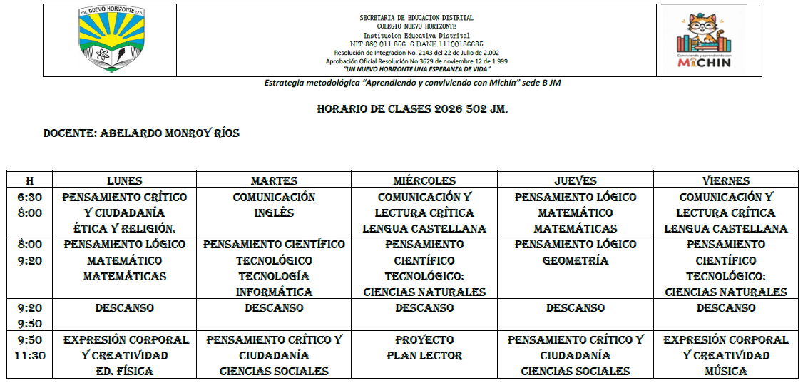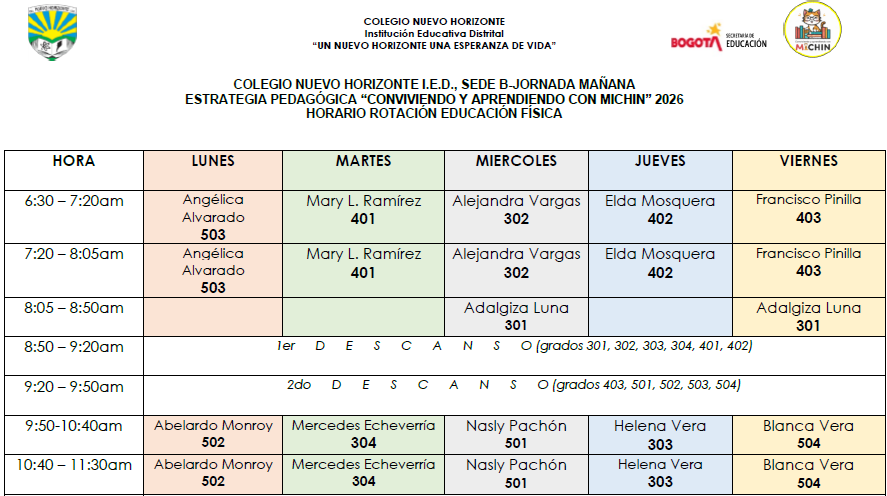 Horario de atención a padres, madres y acudientes Sede B Colegio Nuevo Horizonte (IED) Enviado por Rafael Maurici… el 05/06/2023