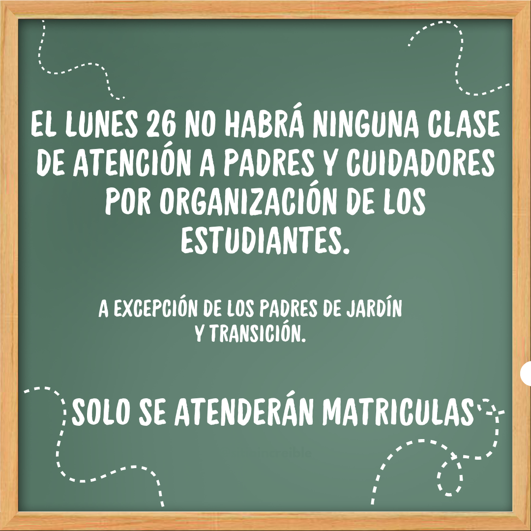 Con el fin de garantizar una organización óptima en la recepción de nuestros estudiantes, les informamos que durante esta jornada no se brindará atención presencial a padres de familia ni cuidadores, exceptuando los siguientes casos: