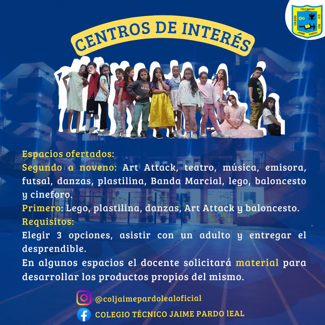 INSCRIPCIÓN CENTROS DE INTERES COLEGIO TECNICO JAIME PARDO LEAL (IED) Enviado por Karina Córdoba… el 12/02/2026