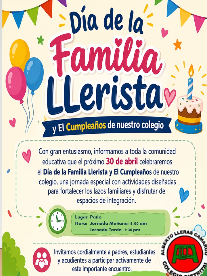 COMUNICADO A LA COMUNIDAD EDUCATIVA QUE EL PROXIMO 30 DE ABRIL CELEBRAMOS EL DIA DE LA FAMILIA Y EL CUMPLEAÑOS DE NUESTRO COLEGIO