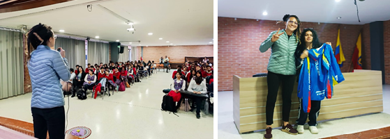 La jornada cerró con broche de oro con la presencia de Carolina Jiménez, campeona mundial de fútbol de salón y múltiple ganadora de torneos departamentales, nacionales e internacionales con la Selección Colombia. La deportista enfatizó la necesidad de que las niñas rompan con los estereotipos de género que aún asocian ciertas profesiones o disciplinas deportivas exclusivamente a hombres.