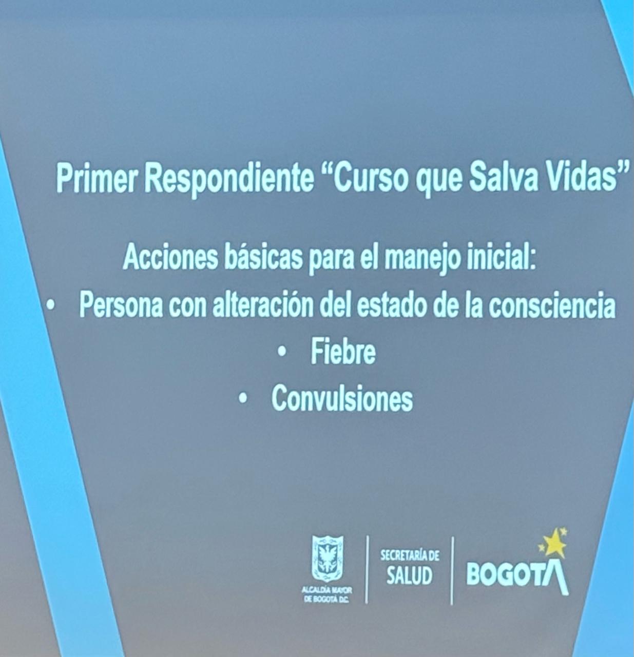 El pasado 11 de marzo de 2025, en las instalaciones de la Secretaría Distrital de Salud, el grupo docente y directivo docente, participó y se capacitó en el curso "Primer Respondiente", buscando: