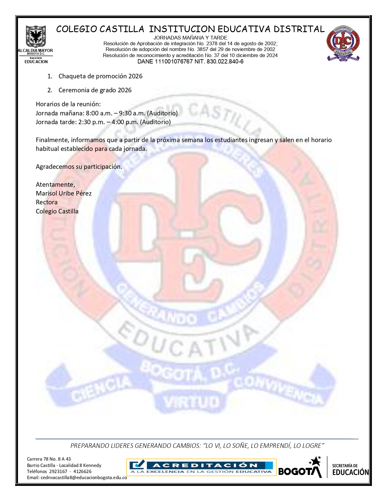 Primera Asamblea de Padres de Familia y Rendición de Cuentas Colegio Castilla (IED) Enviado por Edwin German R… el 28/01/2026