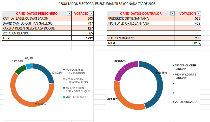 El pasado 25 de febrero se llevaron a cabo las votaciones para representantes estudiantiles a Personero y Contralor en las dos jornadas, el Cabildante tiene una vigencia de dos años en el cargo.