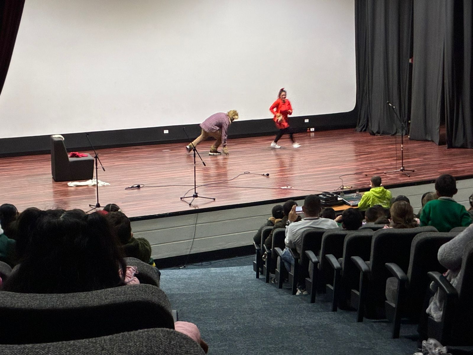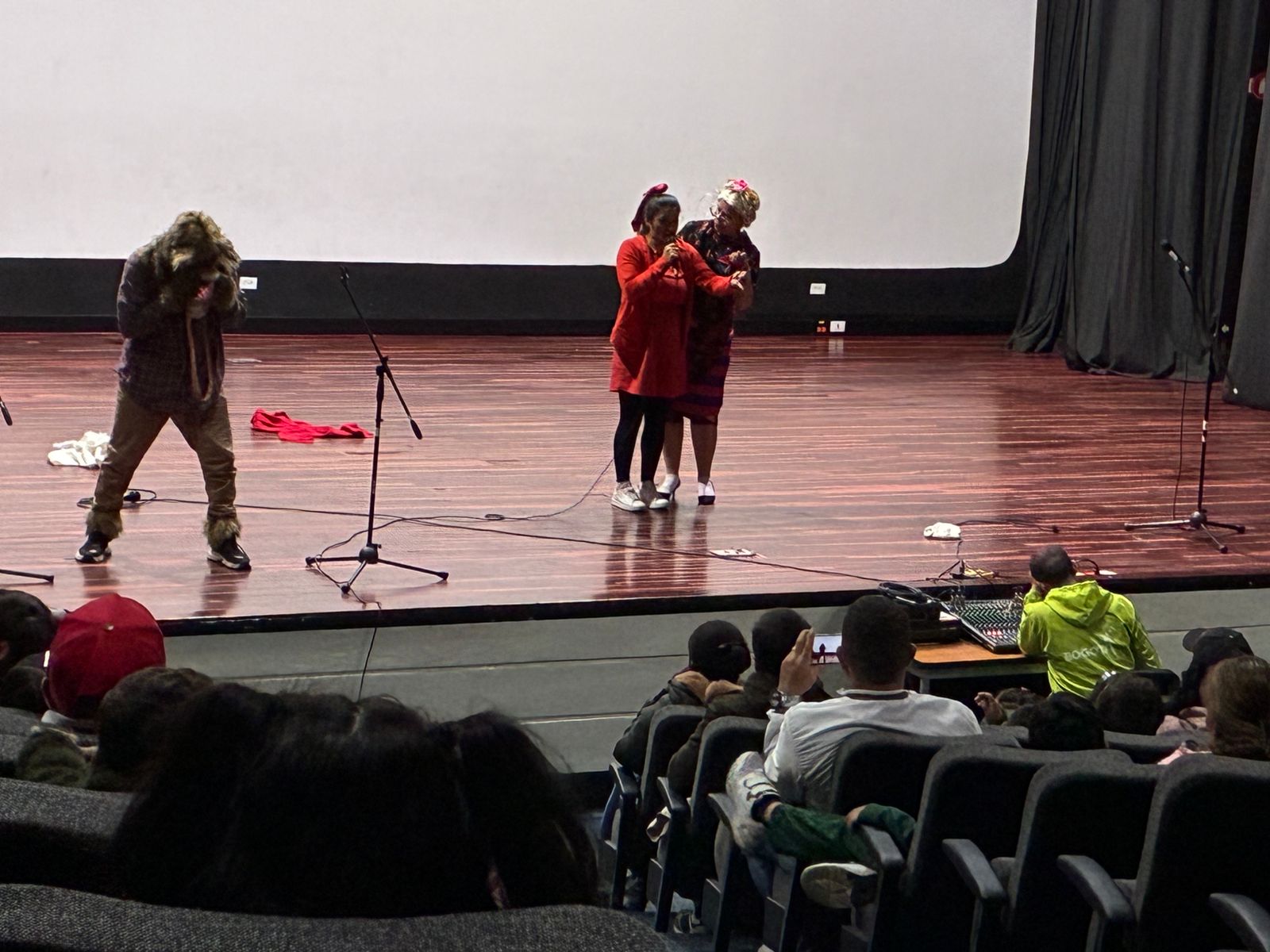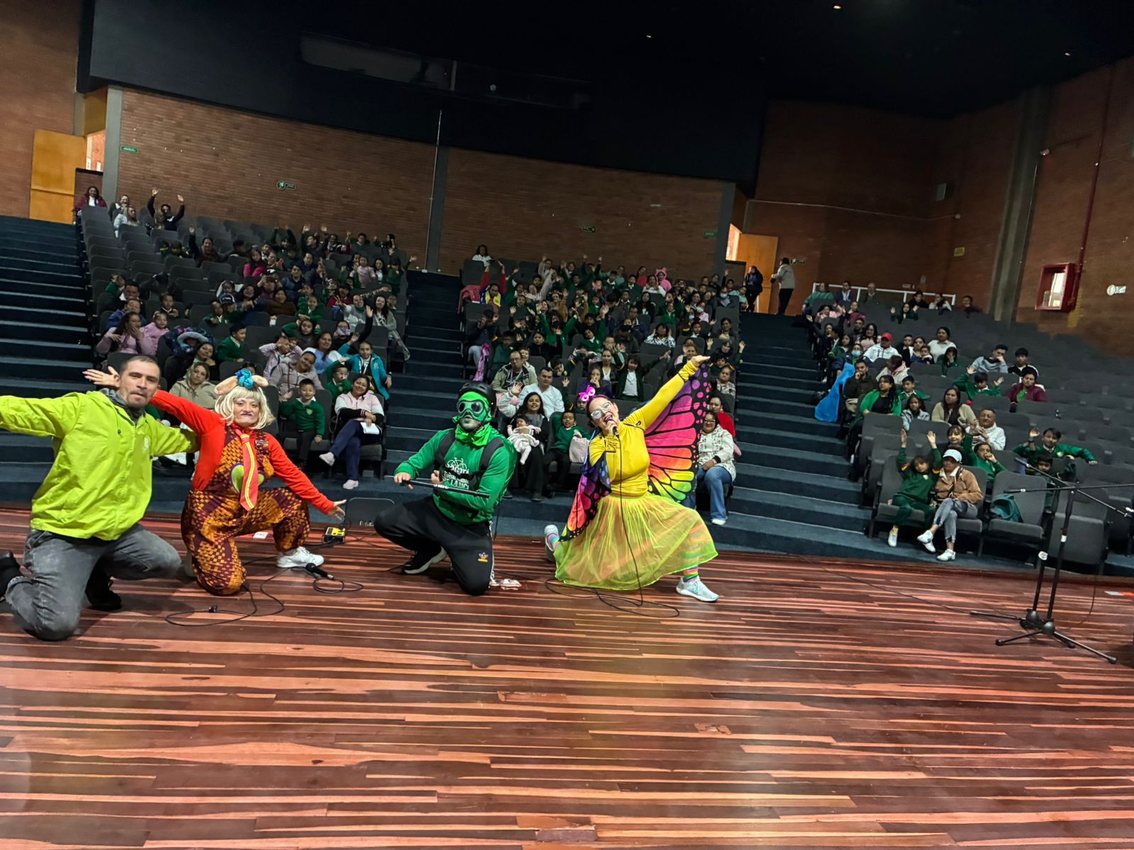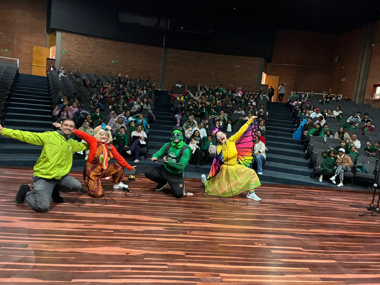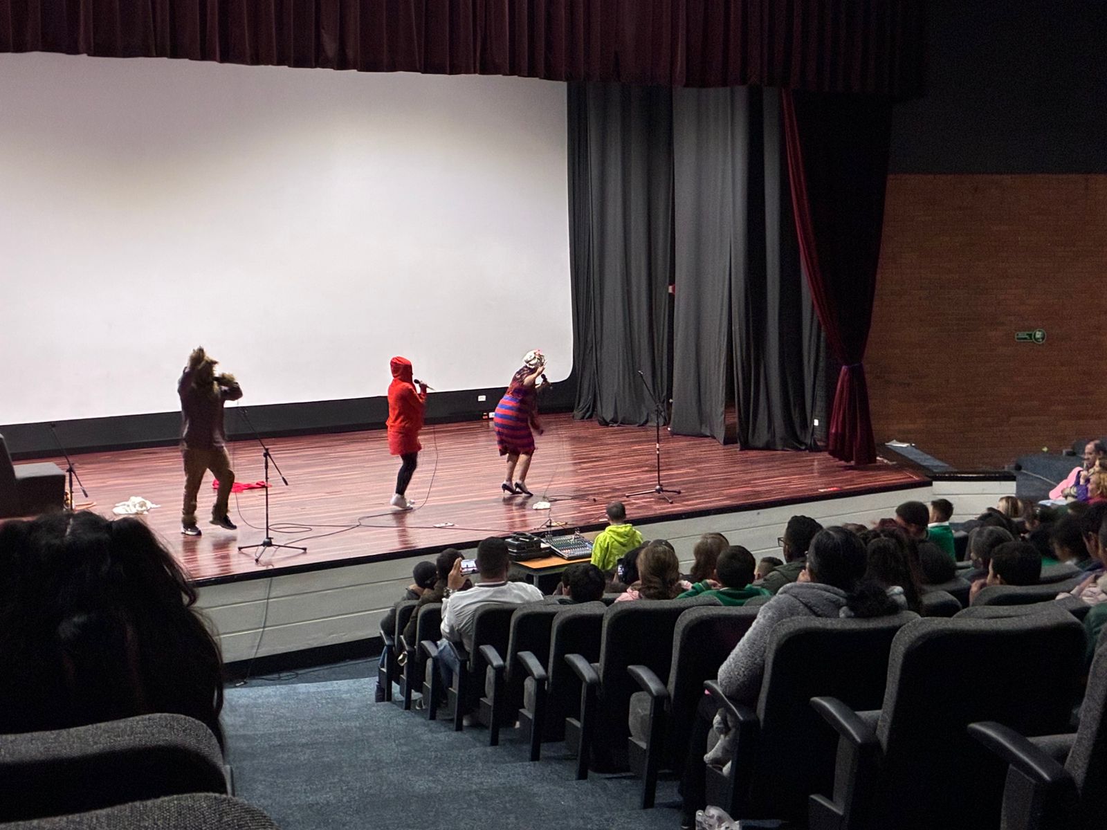 En el Teatro La Victoria se presentaron el día de hoy dos encantadoras obras pensadas especialmente para niños y sus familias de la sede B: "No vayas por ahí, mariposa presurosa" y "Caperucita y el lobo veloz". A través de estas divertidas historias llenas de color, música y personajes entrañables, estas funciones enseñan de manera creativa la importancia de la seguridad vial y el respeto por las normas de tránsito.