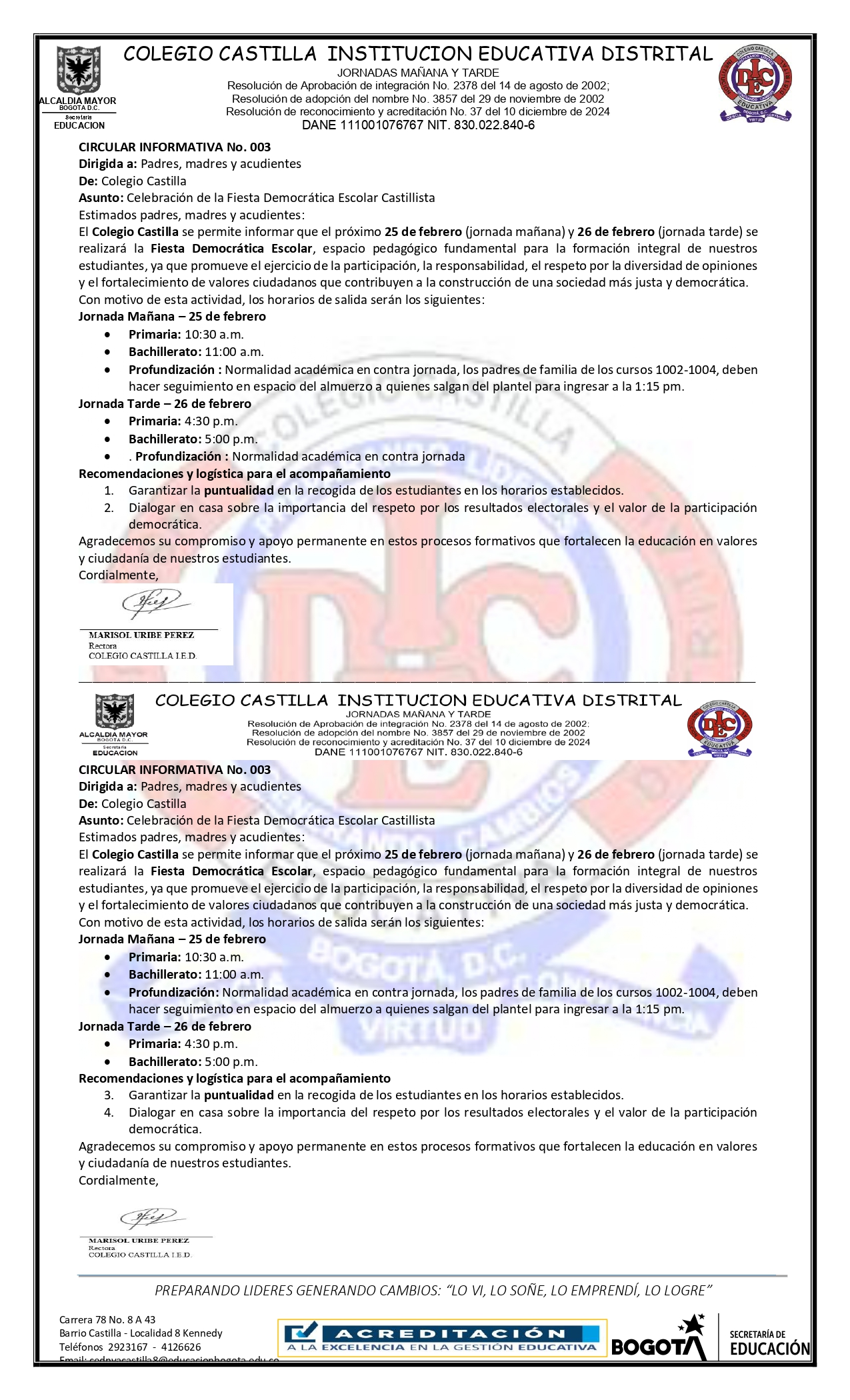 Tener en cuenta para el miércoles 25 y jueves 26 de febrero la salida de nuestros estudiantes Colegio Castilla (IED) Enviado por Edwin German R… el 25/02/2026