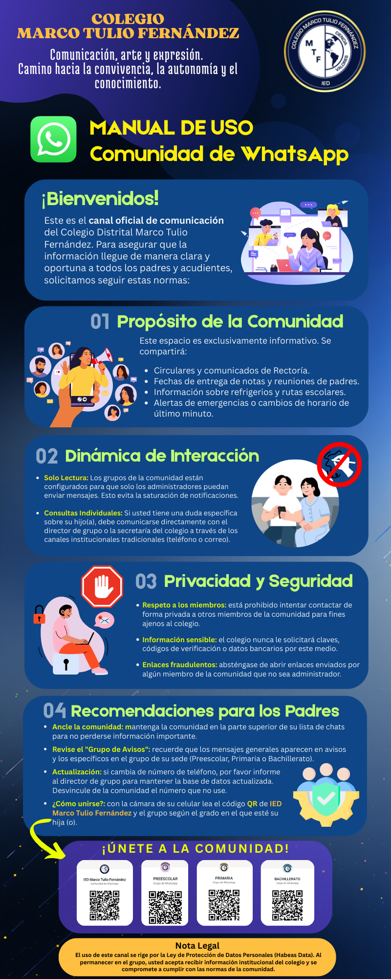 El uso de este canal se rige por la Ley de Protección de Datos Personales (Habeas Data). Al permanecer en el grupo, usted acepta recibir información institucional del colegio y se compromete a cumplir con las normas de la comunidad.